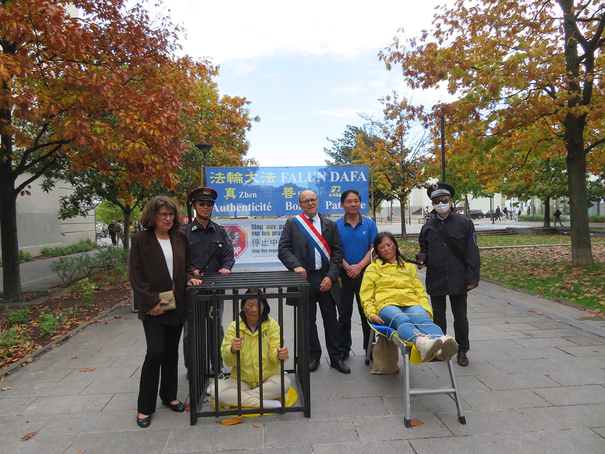 活动期间,巴黎大区上塞纳河区(Hauts-de-Seine)参议员安德烈·加多岚(André Gattonin)先生亲临活动现场,与模拟酷刑展的法轮功学员合影,表示支持法轮功学员的反迫害活动。