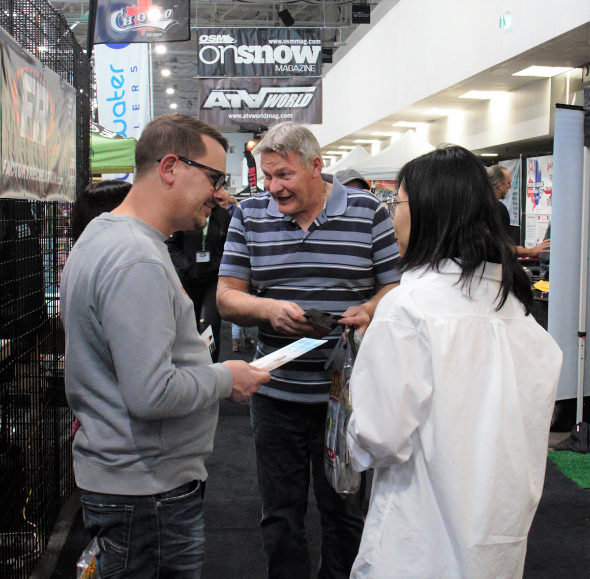![]() 图4:中学生凯文(中)和朋友一起在展位了解真相。 |