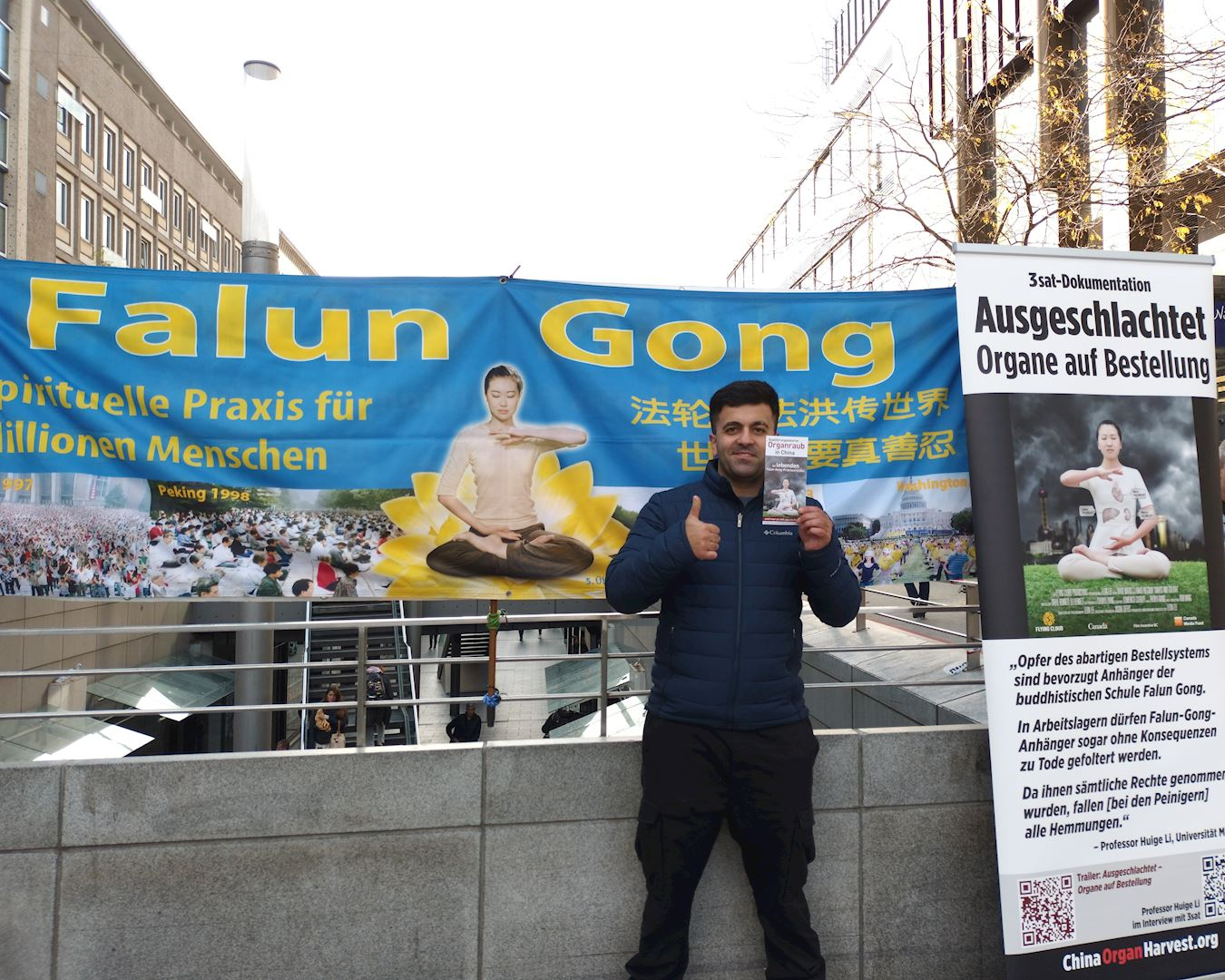 有土耳其血统的马库斯(Markus K.)在大众汽车厂工作。在签完名后,他还接受了简短的采访。谈到签名的原因,他说:“因为我认为在中国(发生的)活摘器官很不好。”马库斯在真相点看到了《中国的希望》这本书。从中他了解到,高智晟律师在为法轮功学员发声后,自己也受到了迫害。他说:“把一个为法轮功(学员)站出来的律师监禁起来,这是不对的。我认为这很不好。”
