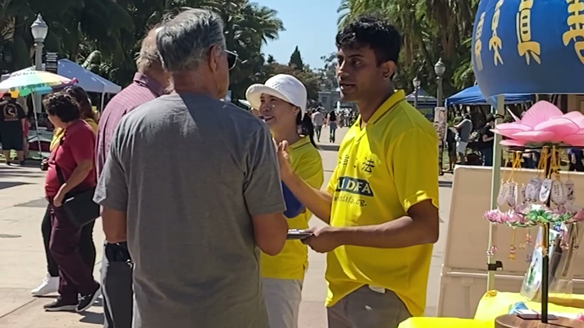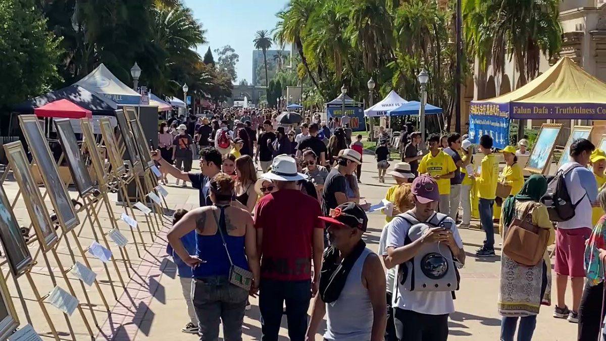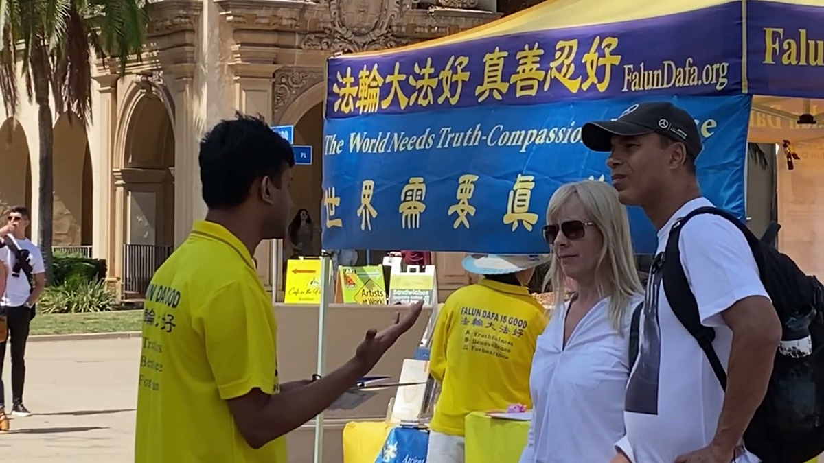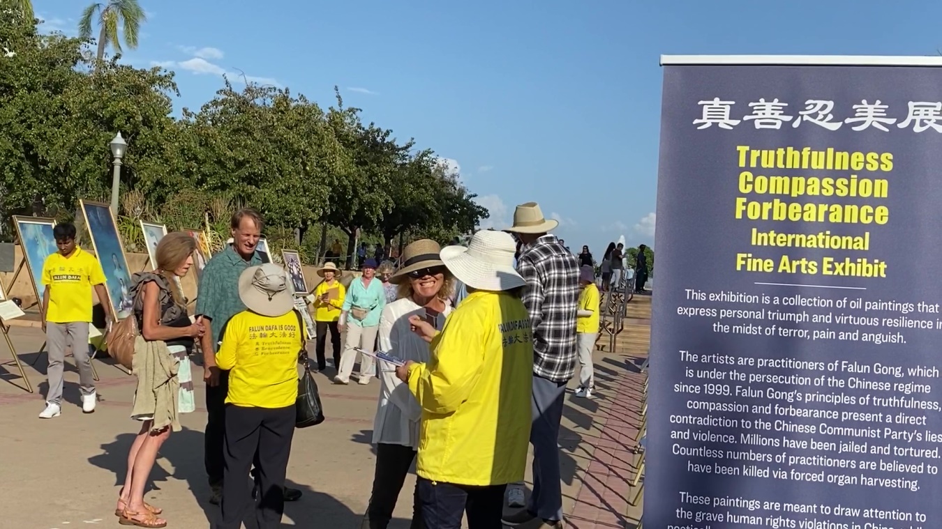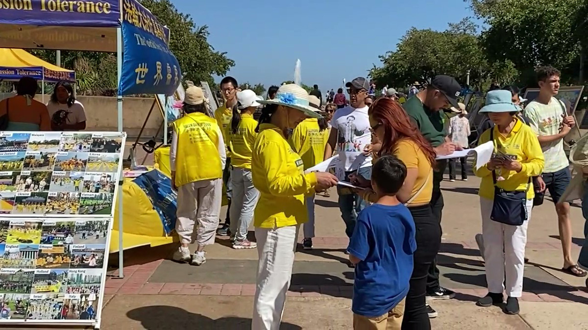 金秋的圣地亚哥,气候宜人,景色迷人,公园内来自世界各地的游人川流不息。当天众多游客驻足观画,凝神良久而动容,感到十分震惊,并纷纷询问、了解为什么中共要迫害法轮功?迫害善良的人们?我们能为你们做些什么?当他们明白真相后,在两次画展中,共有近千名民众签名支持法轮功反迫害。他们当中有来自不同国家和地区的学生、学者, 有不同族裔和肤色的商人,有不同年龄前来观光的游客,也有一家大小前来游玩的当地市民和政府部门工作人员,大家都共同表达了要停止迫害法轮功的愿望与对中共邪恶的愤慨,必须解体它们。
