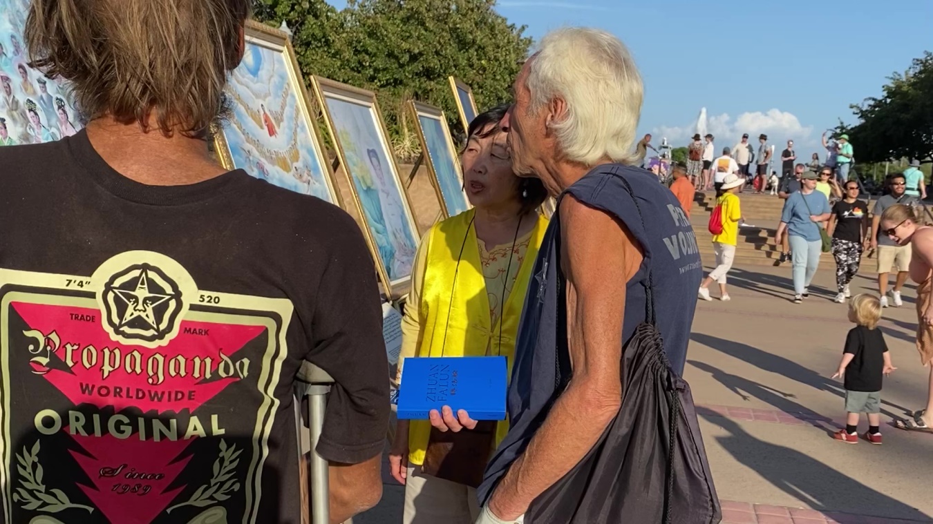 ![]() 图3:游客询问为什么中共要迫害法轮功。 |