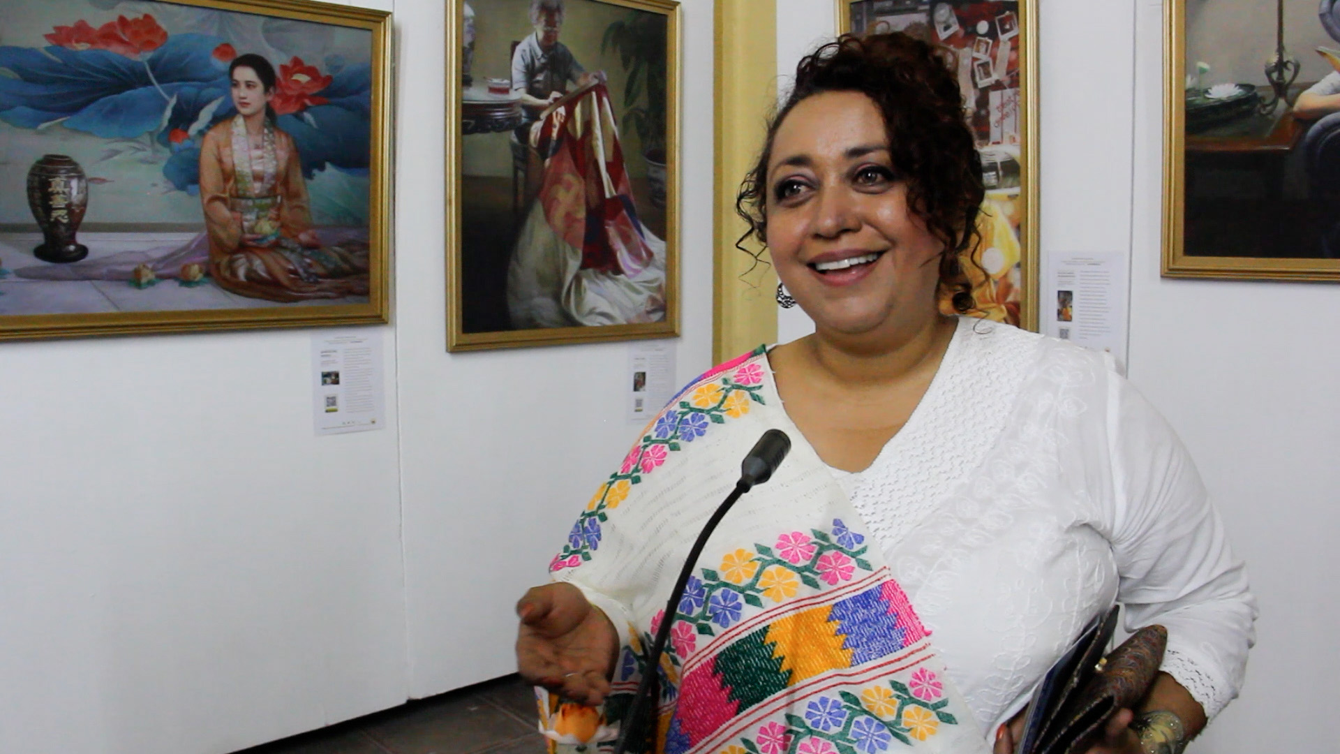 代表墨西哥政府文化部副部长出席美展开幕式的艾莉丝·布林加斯(Iris Bringas)博士说:我发现人们看了画作后非常感动,他们非常想了解画展,了解法轮大法。