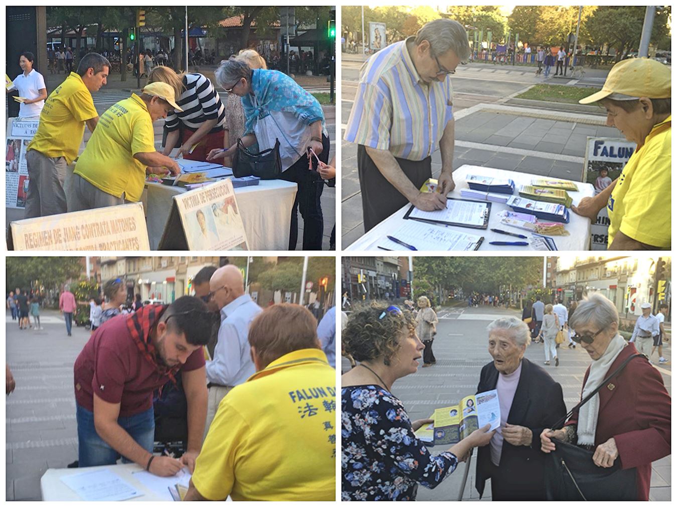 ![]() 图2:活动中,学员们向人们介绍法轮功及中共迫害法轮功的真相。萨拉戈萨民众了解真相后,签名声援法轮功学员反迫害。 |