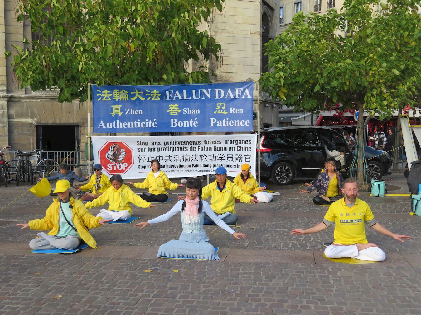 期间,法轮功学员演示法轮功五套功法的同时,还播出了法轮功在世界的弘传以及中共对法轮功的迫害。来往的民众和游人都停下脚步,他们被中共的迫害行径震惊,很多人签名支持反迫害,有的要学炼法轮功。