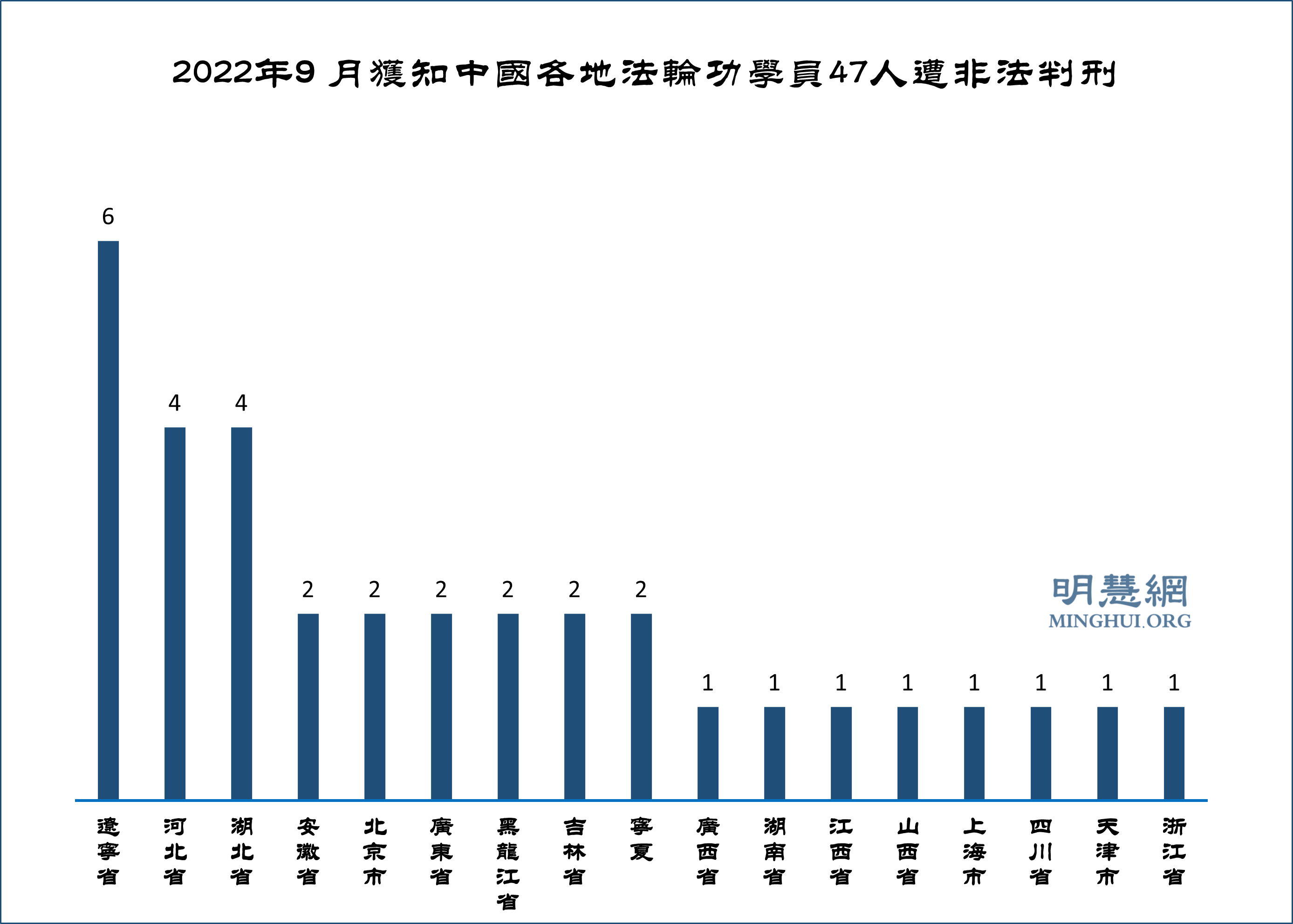![]() 图1:2022年9月获知中国各地法轮功学员47人遭非法判刑 |