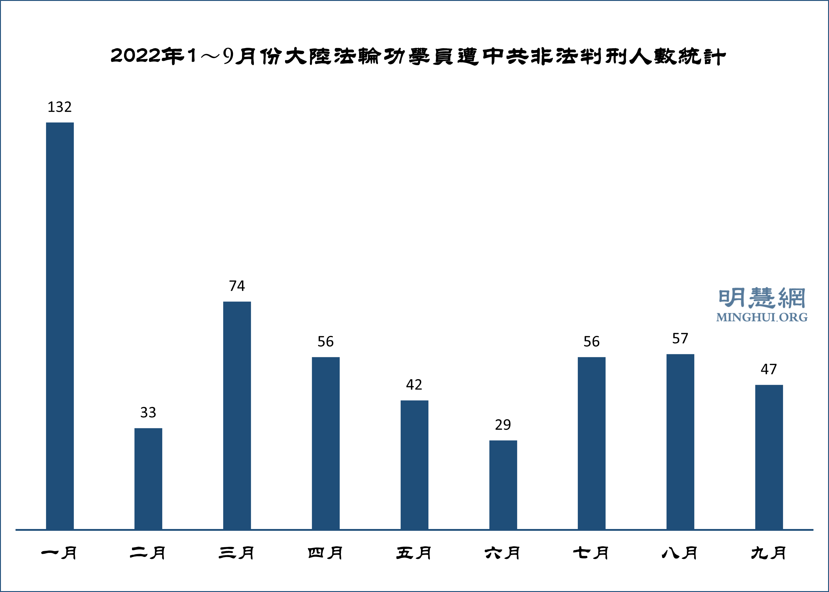 ![]() 图3:2022年1~9月份大陆法轮功学员遭中共非法判刑人数统计 |
