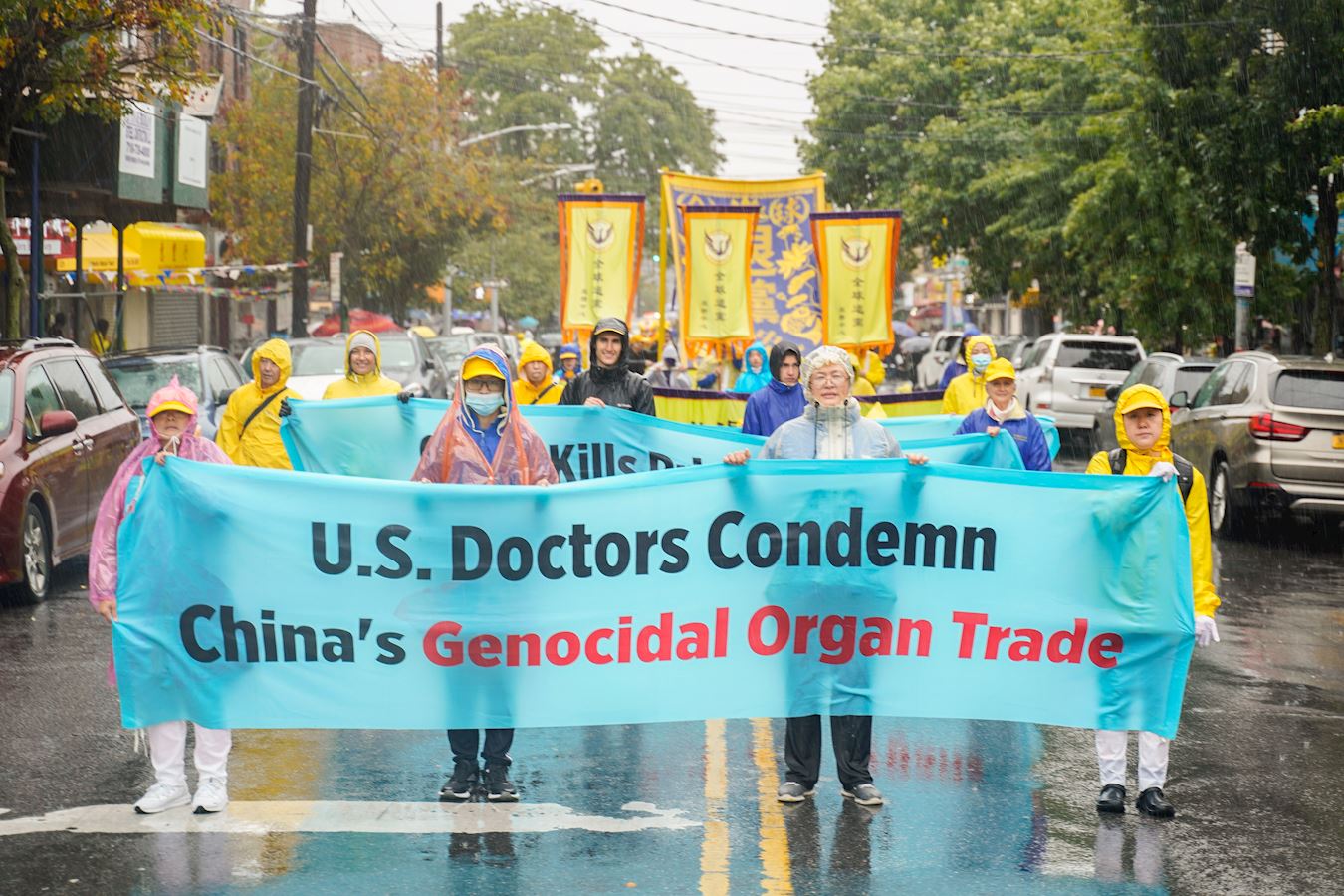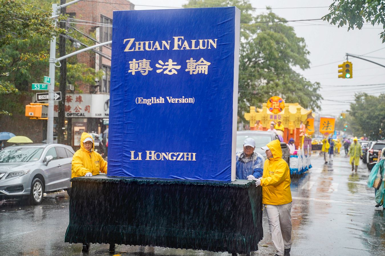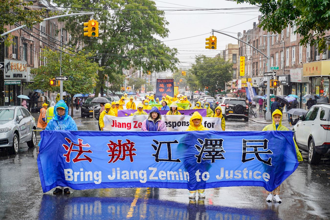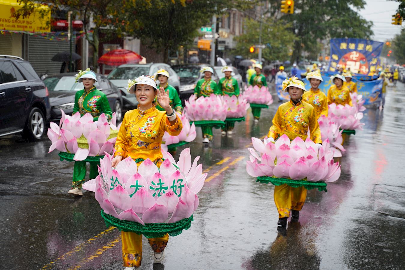 【明慧网二零二二年十月五日】二零二二年十月二日中午,纽约布碌仑八大道华人街上旌旗招展,锣鼓喧天,法轮功学员在风雨中如期举行盛大游行,传递真相,声援四亿中国人退出中共党团队。风雨中,上千名法轮功学员一如既往的浩大场面,令人震撼。