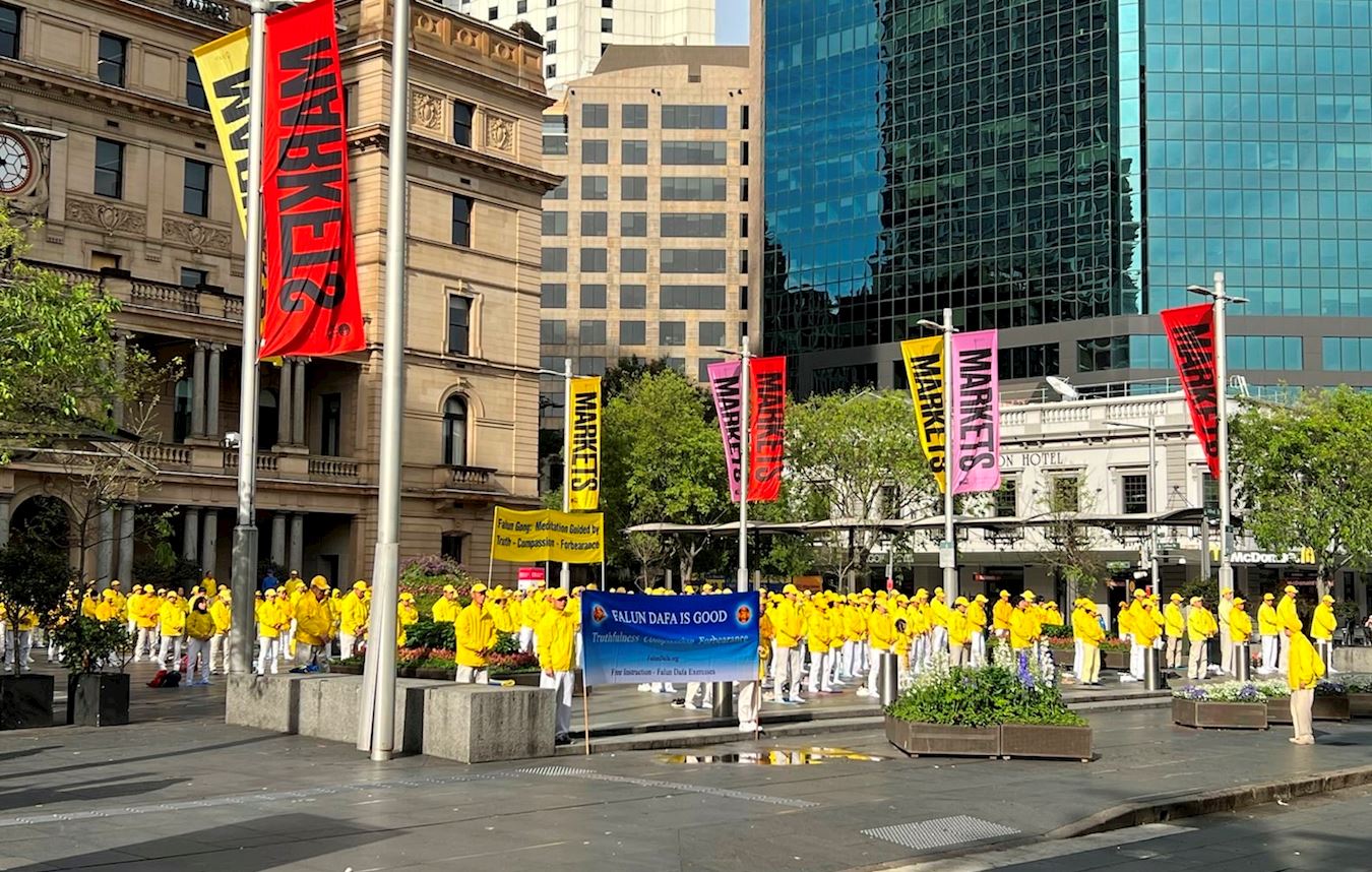 ![]() 图1~3:二零二二年十月七日,数百名法轮功学员在悉尼市中心举行了集体晨炼。 |