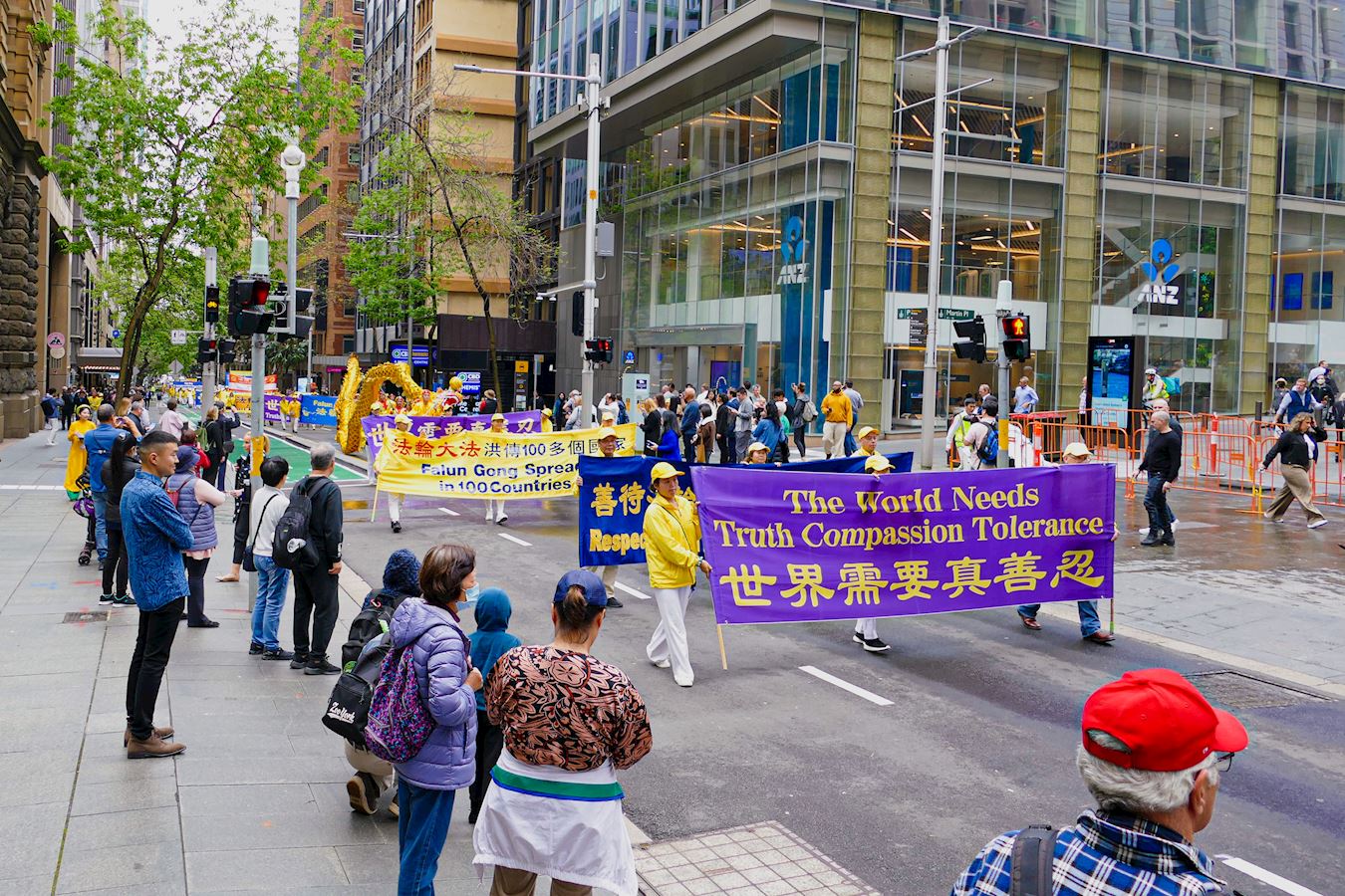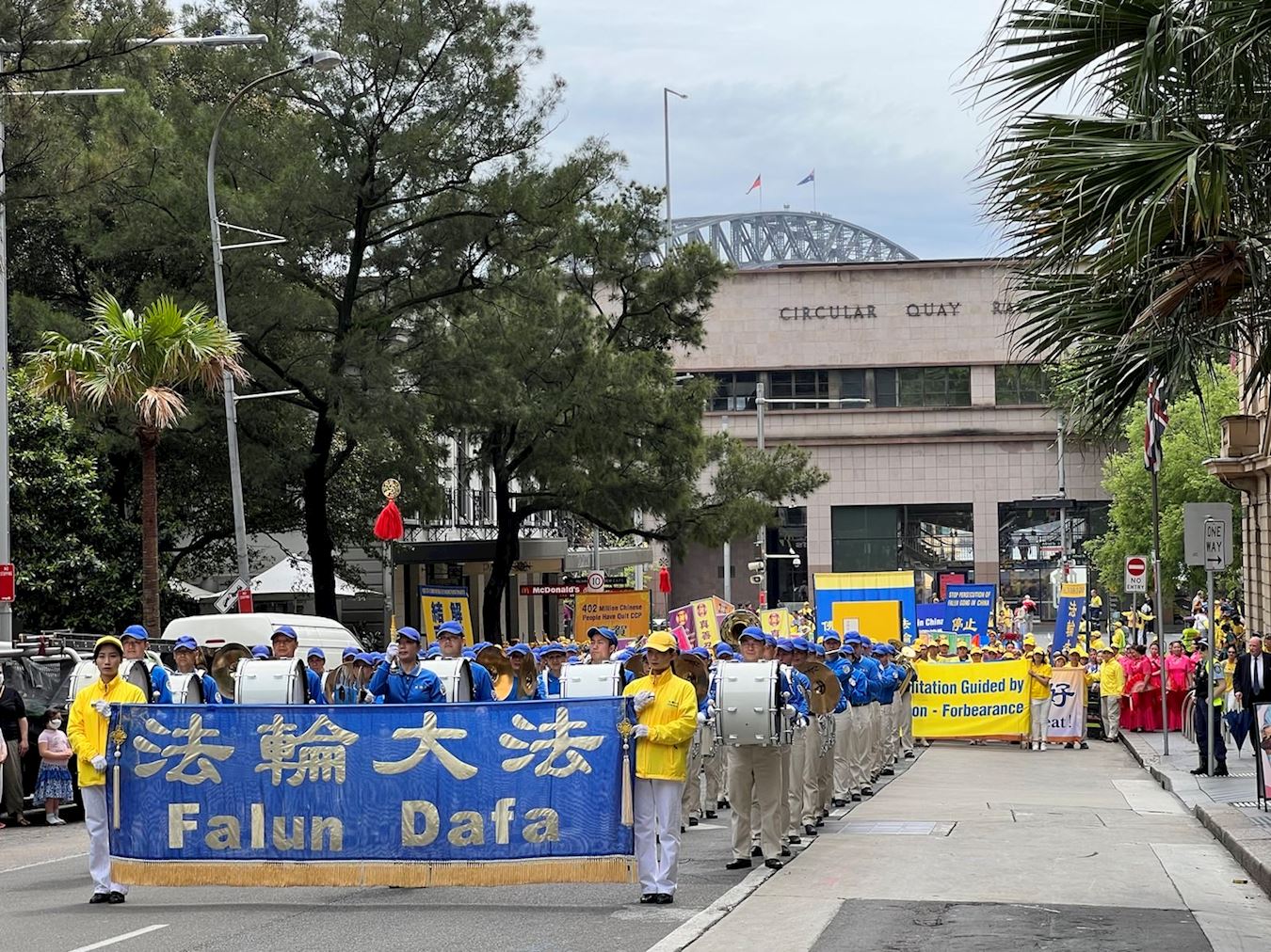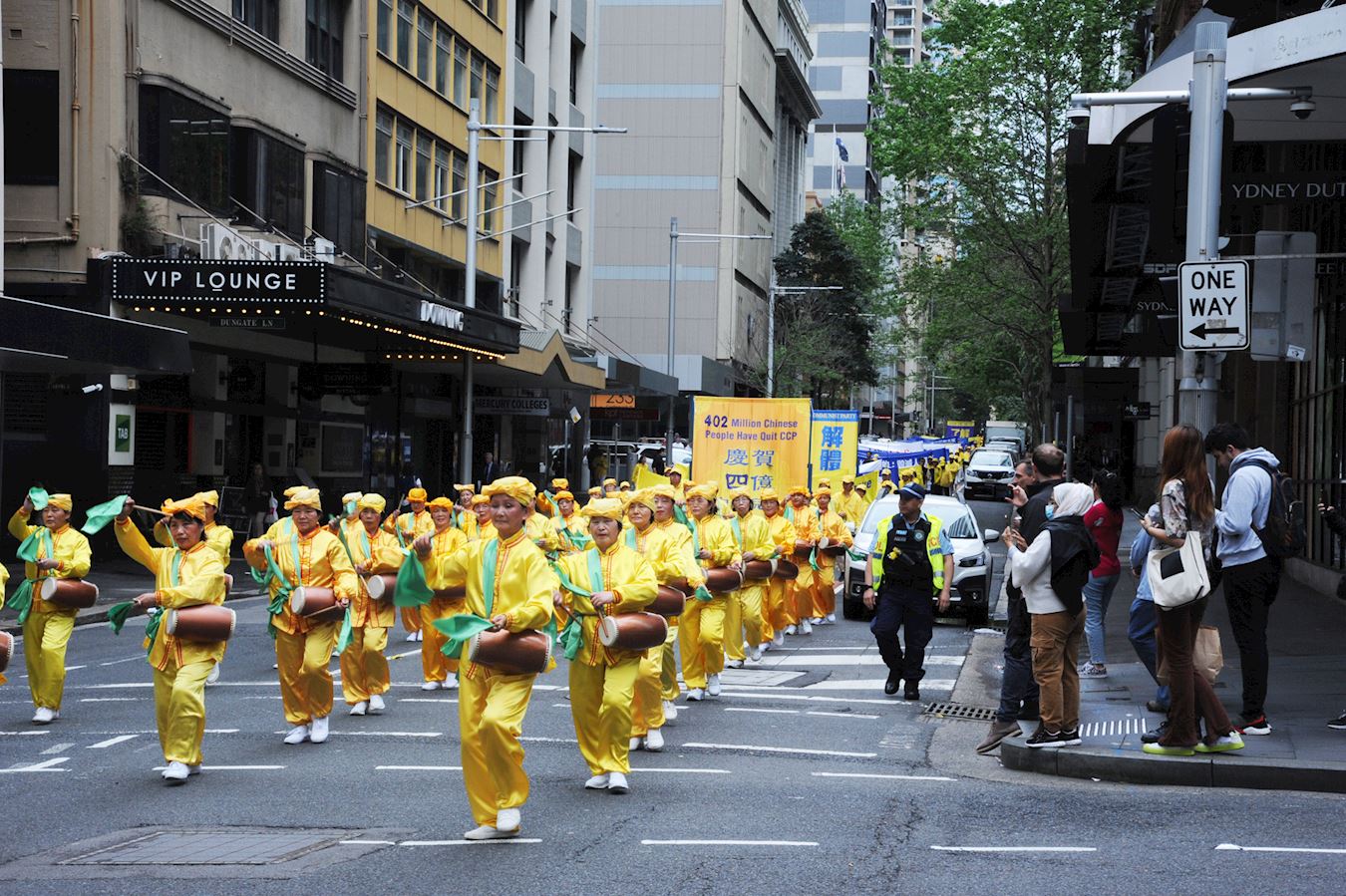 队伍由警车开道,从海关大楼出发,途经市中心多条繁华街道,游行至中央火车站对面的贝尔莫尔(Belmore)公园结束,历时一个多小时。