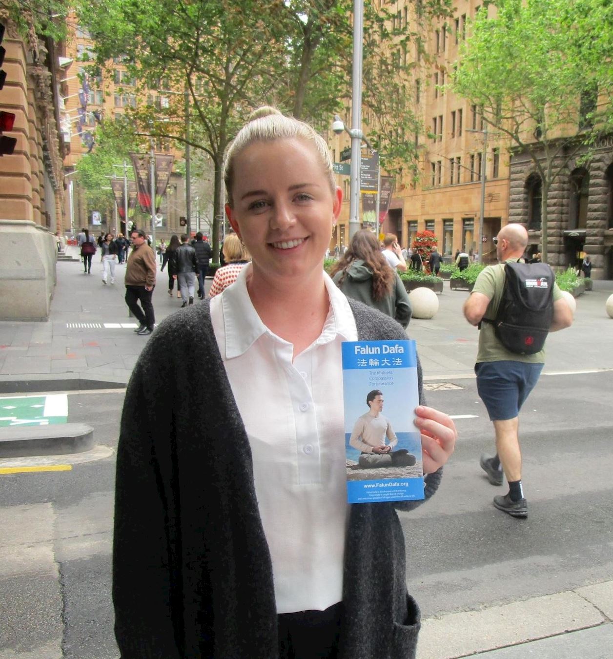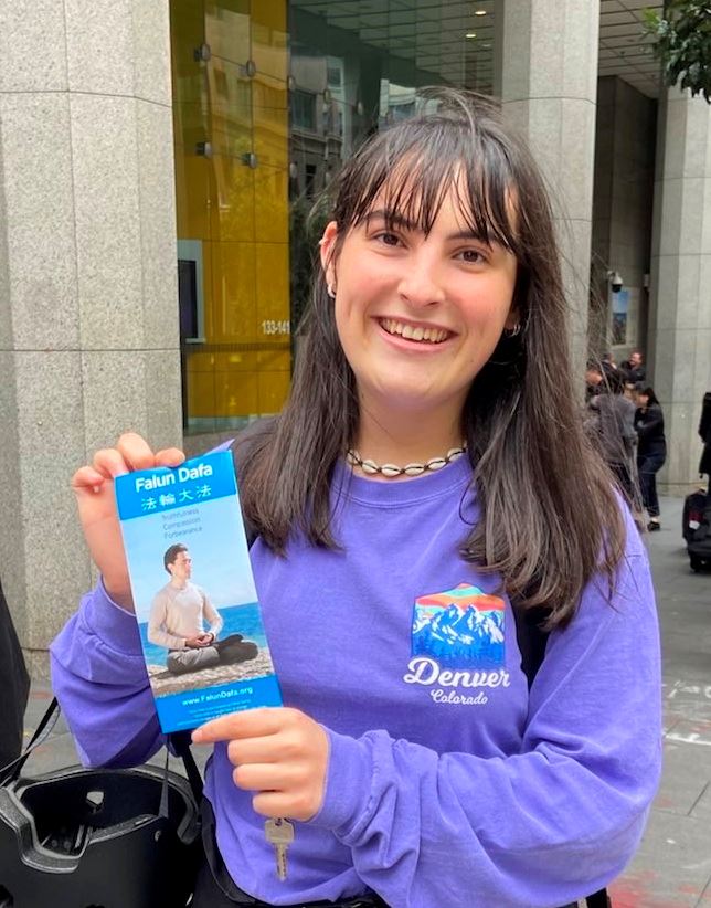 在一家大律师事务所工作的丽贝卡(Rebecca)说:“法轮功真、善、忍的原则非常了不起。如果我们都来遵循真、善、忍,这个世界会更令人愉快,我们都需要以各种方式多做一点。”