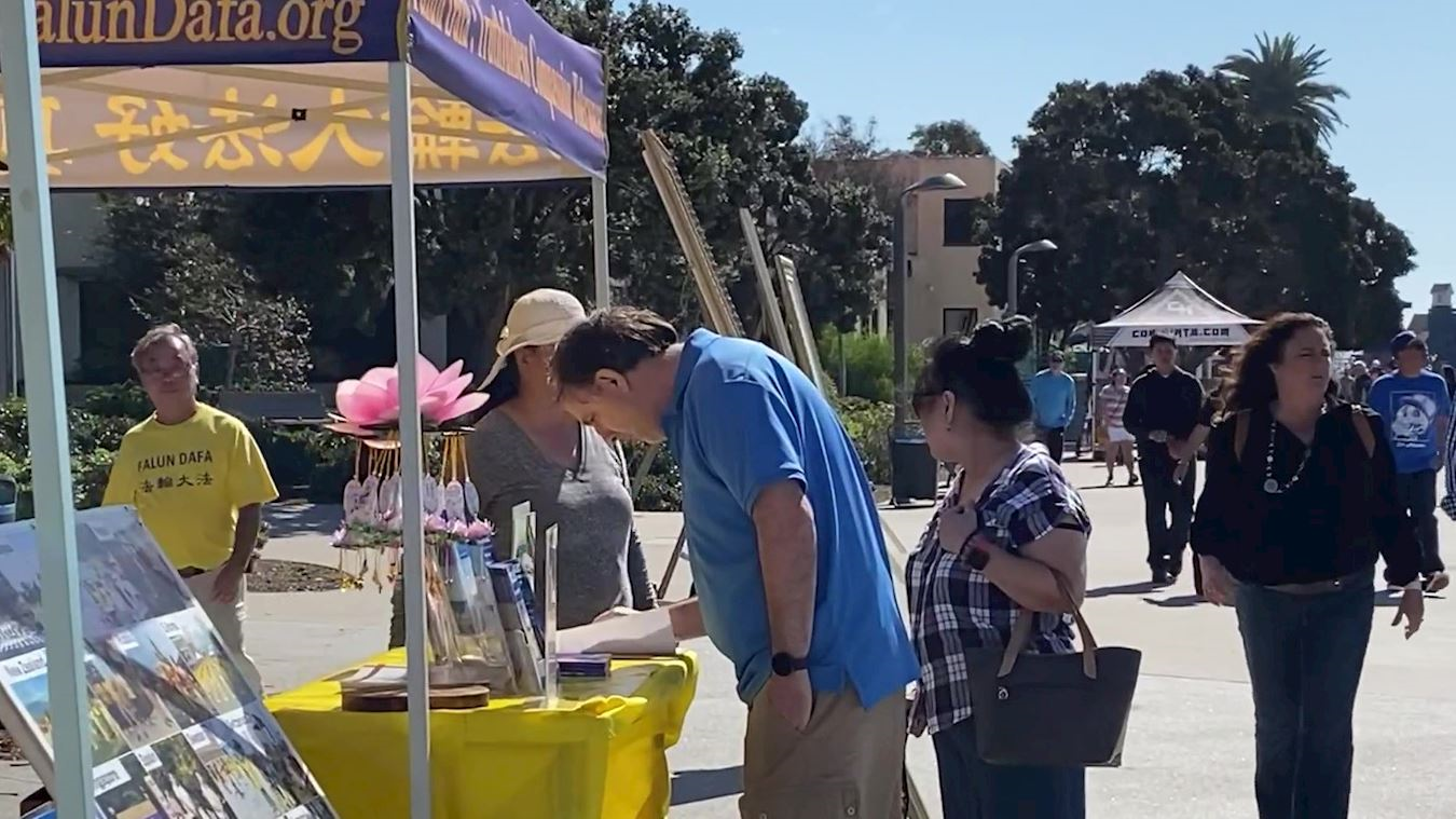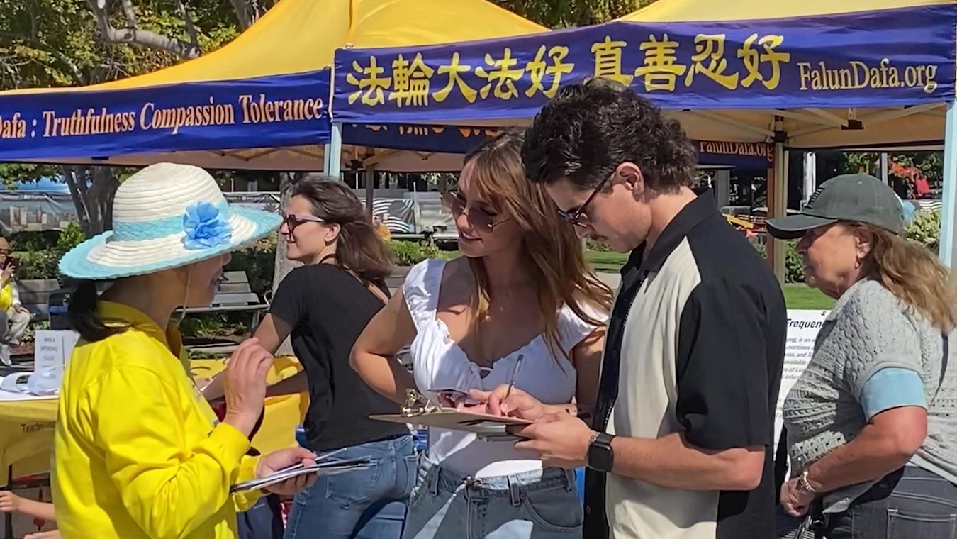 他们都在“停止迫害法轮功”的征签板上签名,并感慨地说:“真善忍是这个世界的希望,简直不可相信在当今的中国会发生这样的事情,一定要结束中共这种残酷的迫害!希望我们的签名对他们能有所帮助。”