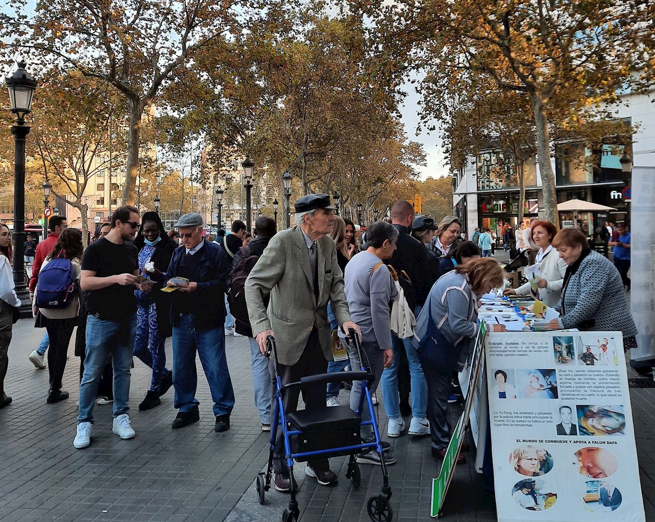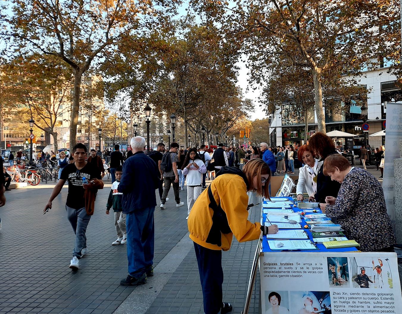 ![]() 图1~4:二零二二年十一月十二日下午,巴塞罗那的部份法轮功学员聚集在繁华的市中心设立真相点,吸引许多民众驻足了解真相,并签名呼吁停止迫害。 |