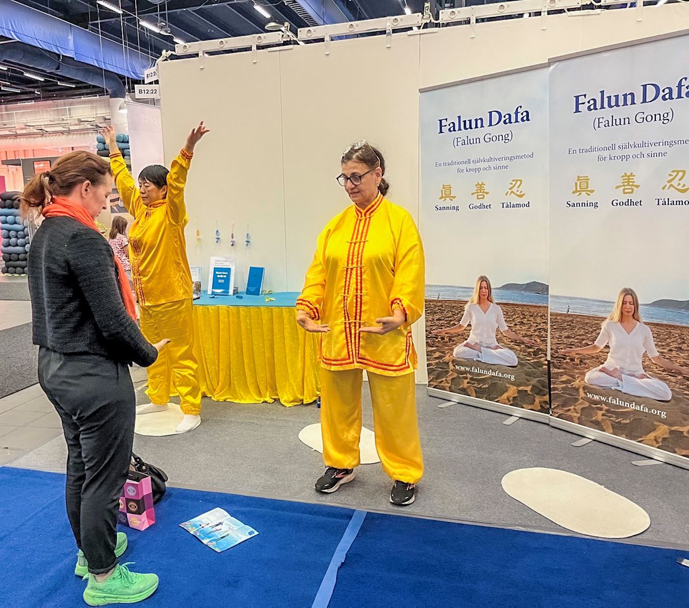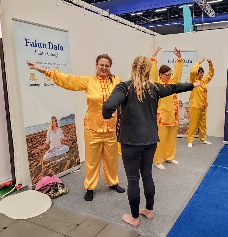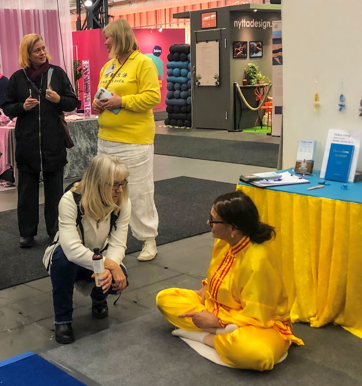 她还向来自瑞典各地及英国、西班牙、比利时等欧洲其他国家的参观者介绍法轮功,讲述法轮功在中国无辜遭受迫害的情况。人们明白真相后纷纷谴责中共暴行,并表示对功法很感兴趣,当他们得知当地、本国也有炼功点时都很高兴,并收下了真相传单,表示回去会上网了解。