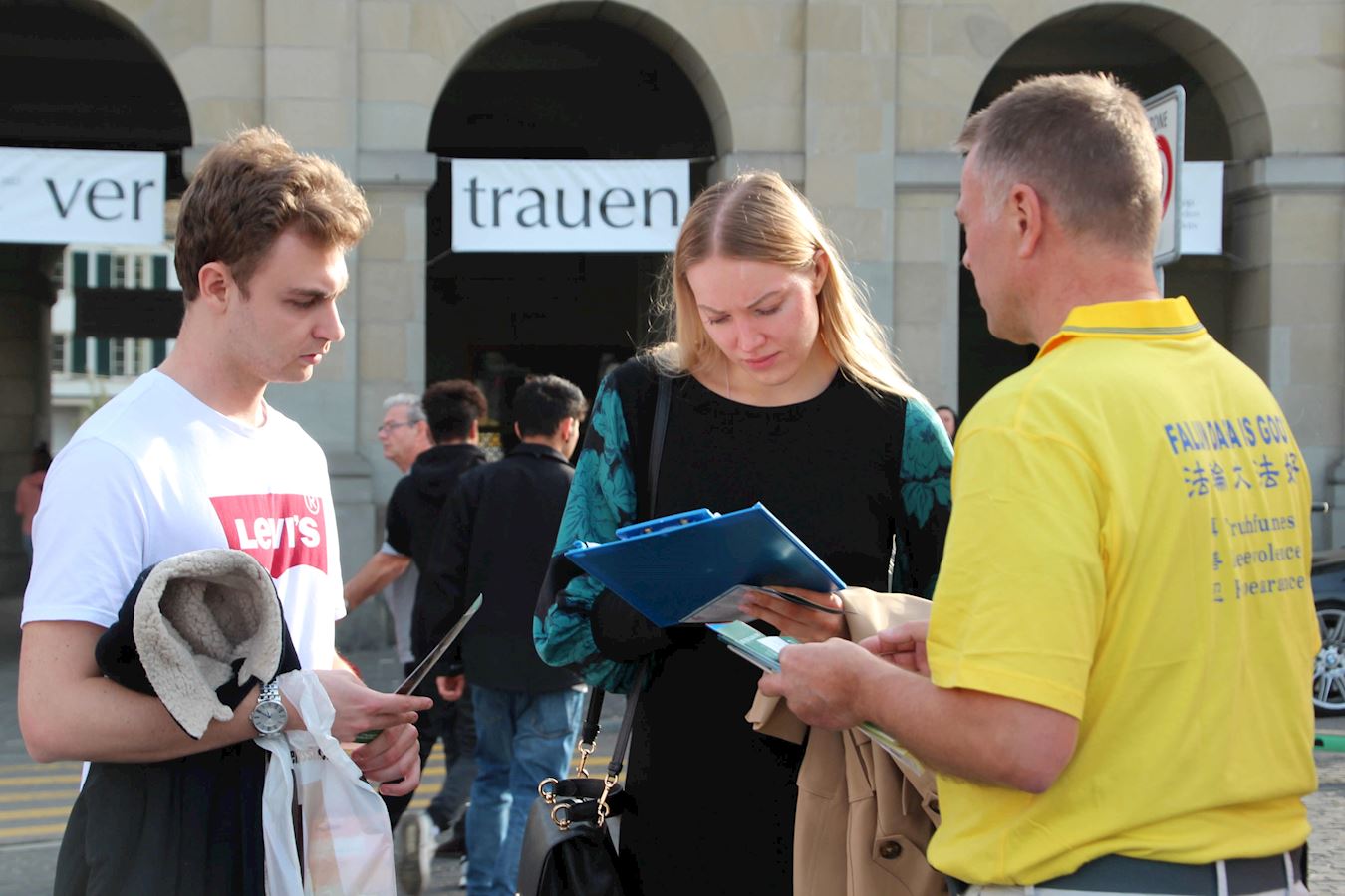 他也打算将了解到的信息告诉更多人:“让那些被(非法)关押的人们(法轮功学员)能够自由的生活,就如我们在瑞士一样。”