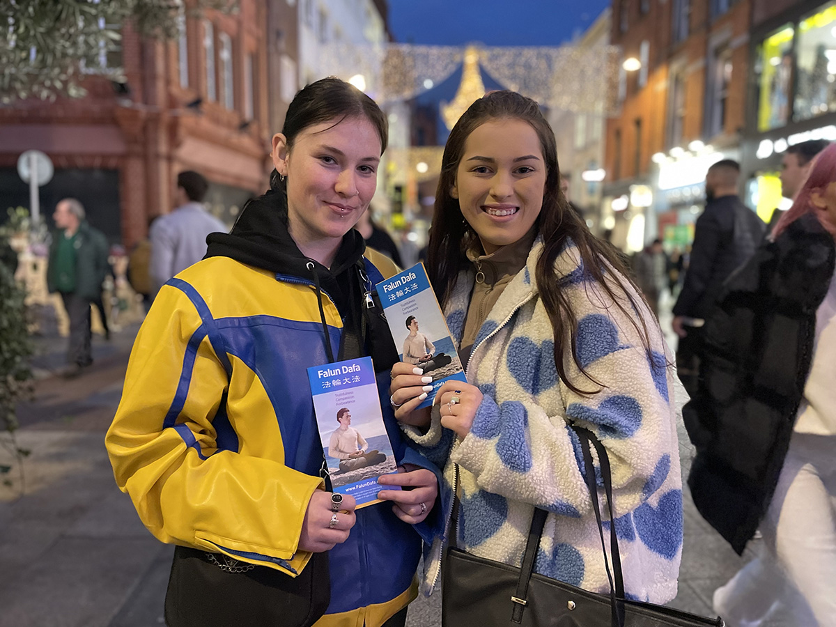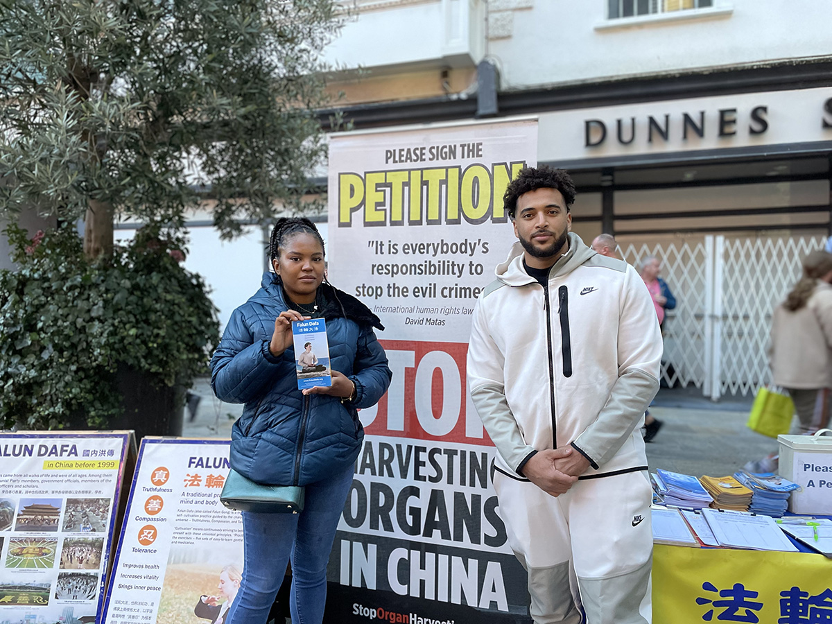 居住在爱尔兰的阿琪拉(Akira)和阿巴德(Abad)也很喜欢法轮功缓慢祥和的功法。他们都表示想要学,询问了教功的时间和地点。他们说此前从未听闻这场迫害。阿巴德说自己来自苏丹,很清楚共产主义的危害。他们希望更多的人能了解迫害真相,并告诉学员说,“守住希望,就会看到和平的到来”。