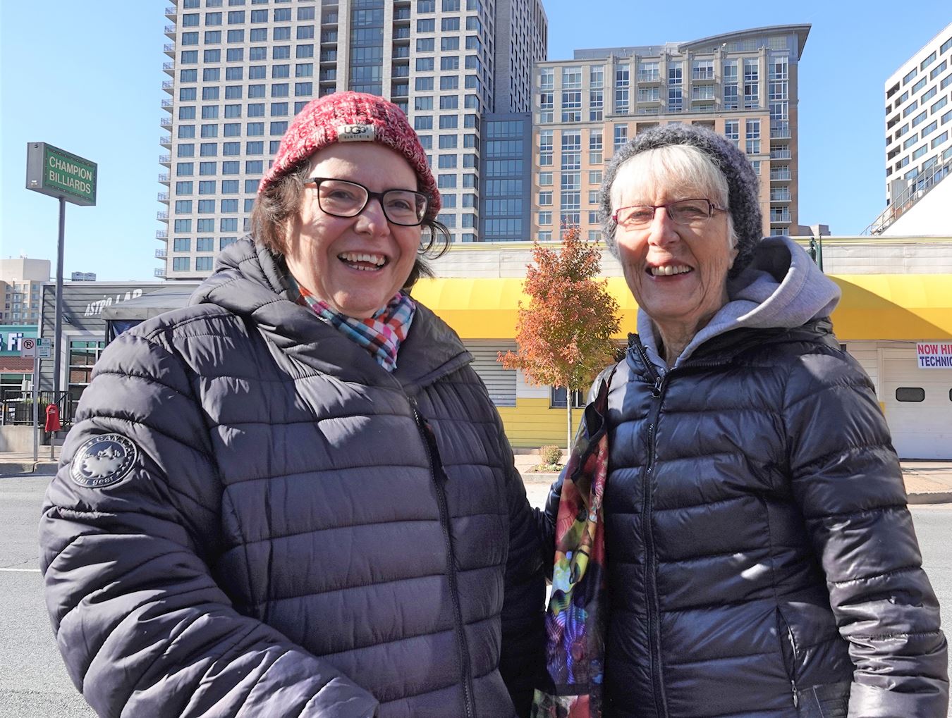 ![]() 图10:银泉市居民乔安(右)和朋友一起观看游行。 |