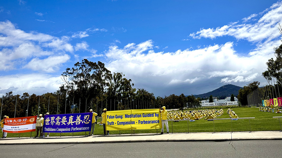 ![]() 图1~3:二零二二年十一月二十一至二十三日,澳洲各地部份法轮功学员汇聚首都国会大厦前集体炼功、展示横幅,吸引了民众驻足了解真相。 |