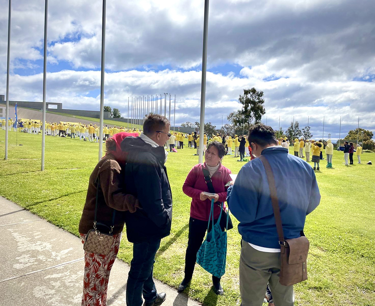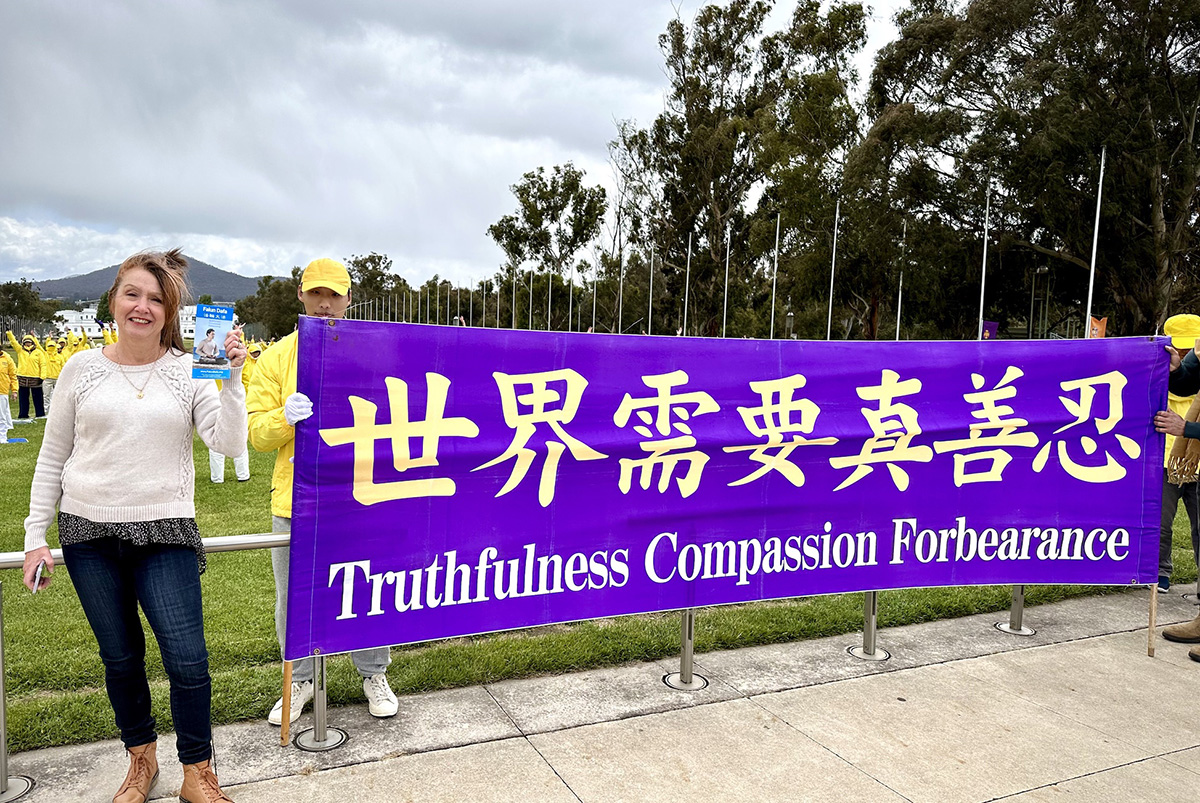 居住在墨尔本的菲利宾人迈拉(Myra)与家人一起到堪培拉旅游。她被法轮功学员在国会大厦前的和平抗议活动所吸引。