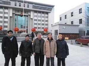 二零一六年二月四日下午,王莲双(右一)和老伴王福江(左二),在律师的陪同下,到廊坊市检察院递交控告信,控告制造冤案的三河市公安局警察和三河市法院法官。