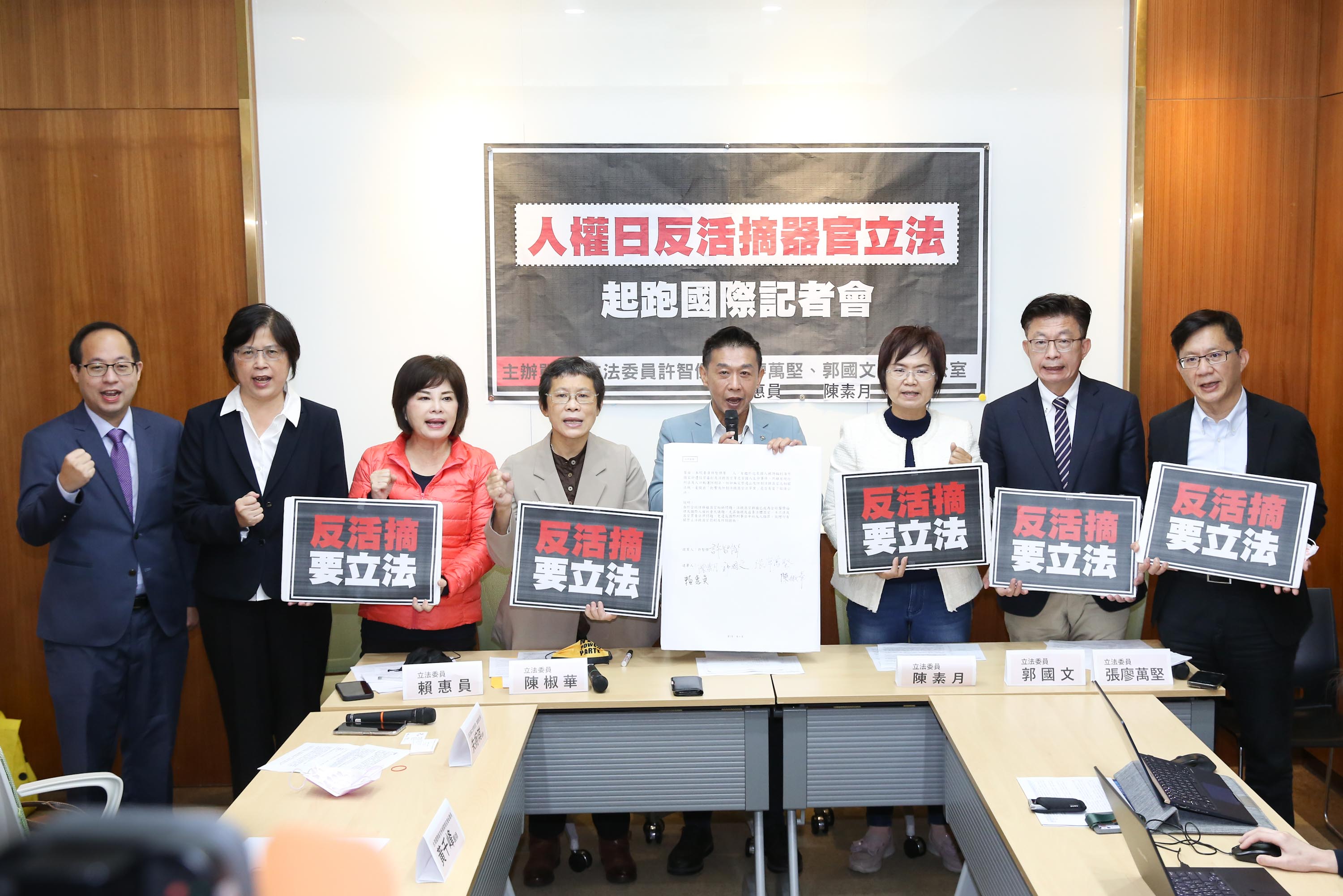 当天记者会,由台湾立委许智杰、郭国文、张廖万坚、赖惠员、陈素月及陈椒华与台湾国际器官移植关怀协会,共同举办。目前已有包括国民党、民进党、时代力量与无党籍在内的二十六位立委表态支持提案。