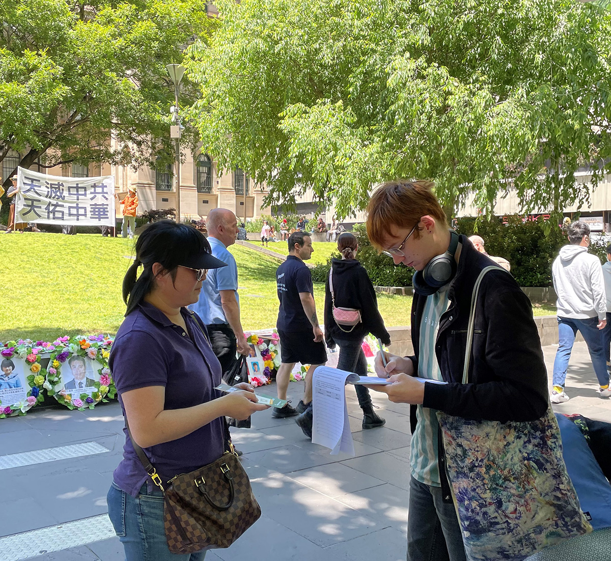 ![]() 图1~4:2022年12月10日,国际人权日当天,墨尔本举行集会呼吁制止中共的人权迫害。图为现场民众关注被中共迫害致死的法轮功学员的真相,签名支持法轮功学员反迫害。 |