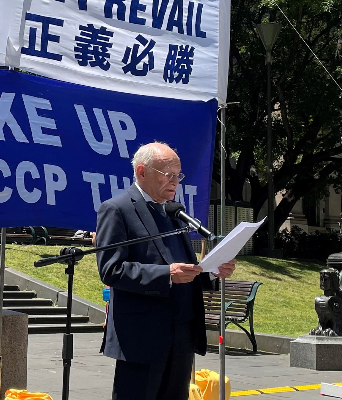 澳洲著名智库“国家公民委员会”前主席、《新闻周刊》撰稿人韦斯特摩尔(Peter Westmore)在集会上呼吁人们了解法轮功真相。他说,“法轮功修炼者因为坚持信仰而遭受迫害甚至被杀害,并不是因为触犯了任何法律”,对真、善、忍的信仰是任何文明人都应该认同的。
