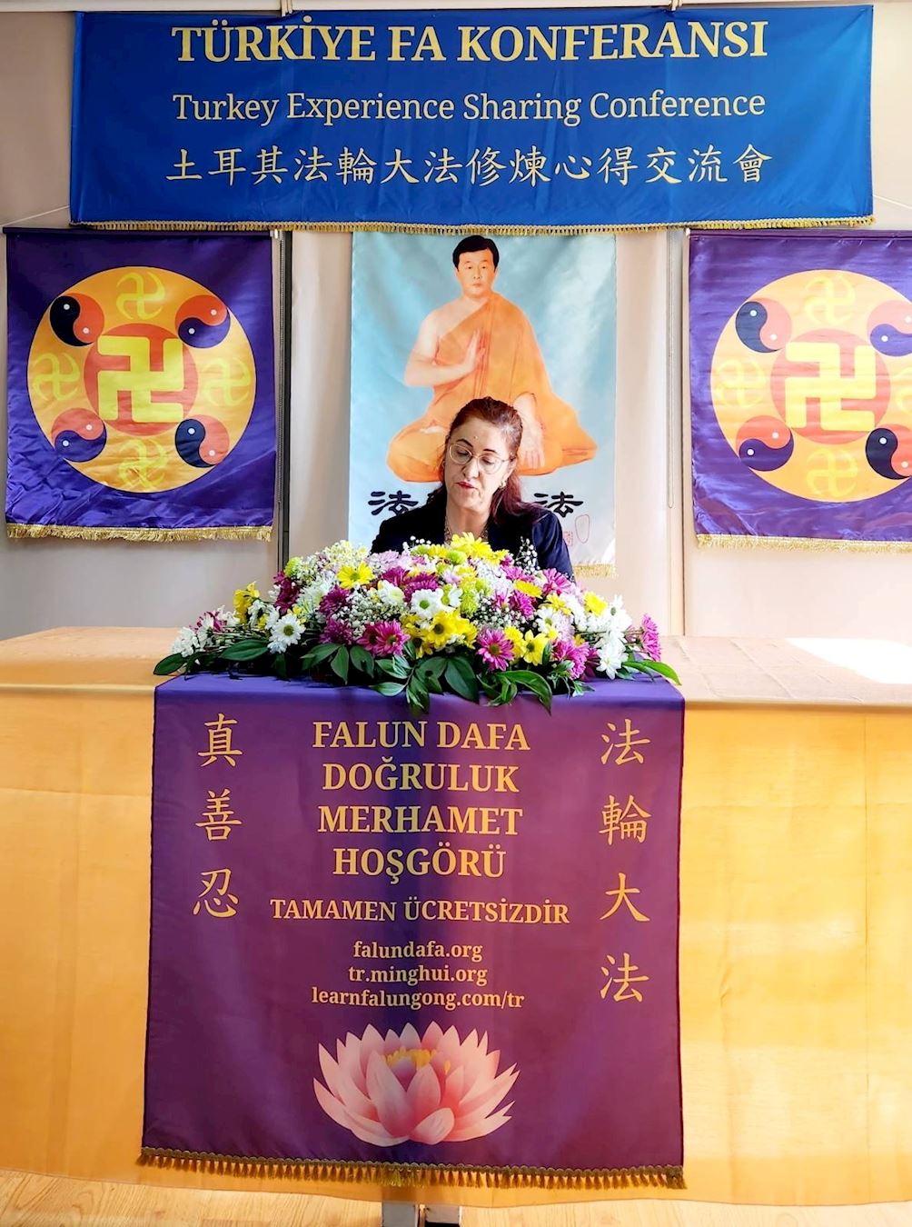 厄尔图恩交流到,当她第一次读《转法轮》时,她知道里面的内容都是真实的,但因自己所得到的东西太伟大了而有些不知所措。起初她认为修炼对她来说是不可能的。她认为自己无法放下执著和瘾好。但随着她继续修炼,她的执著和瘾好自己就消失了。她说,她意识到,宇宙中所有的智慧和真正的科学都在大法中。