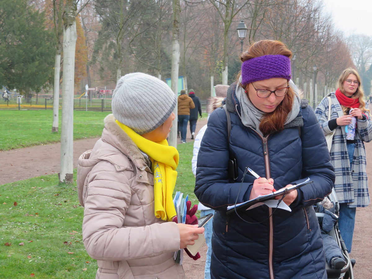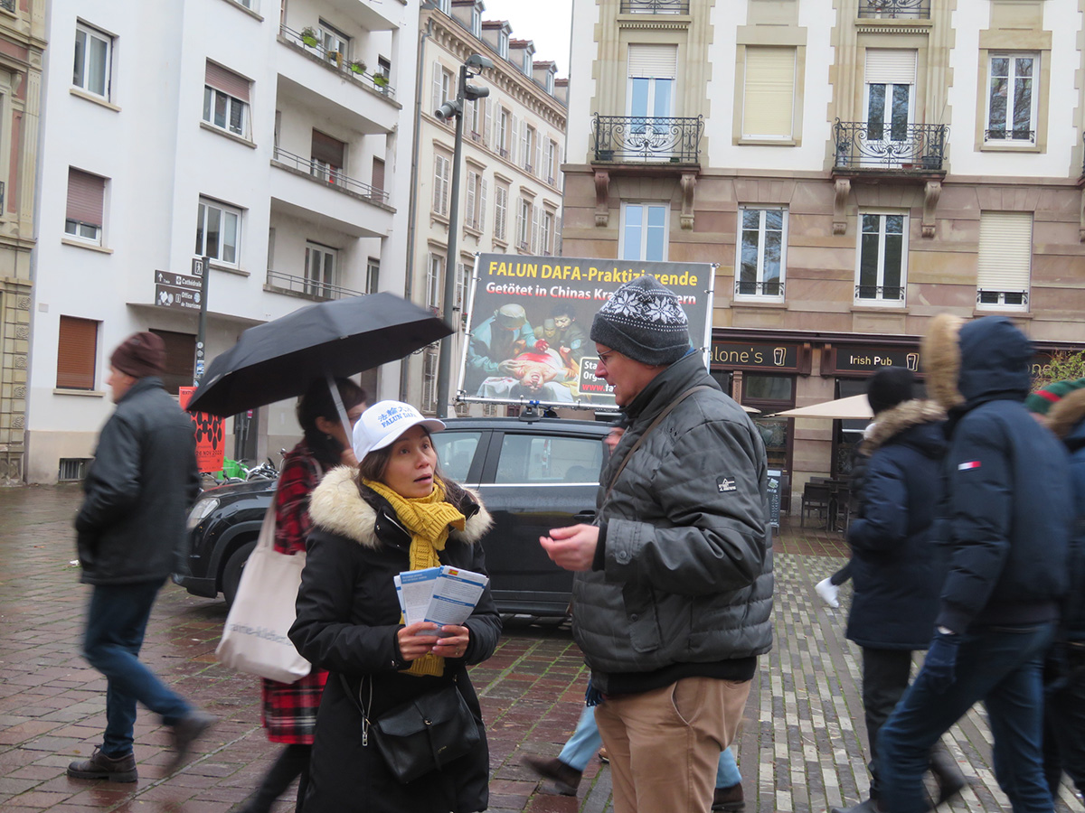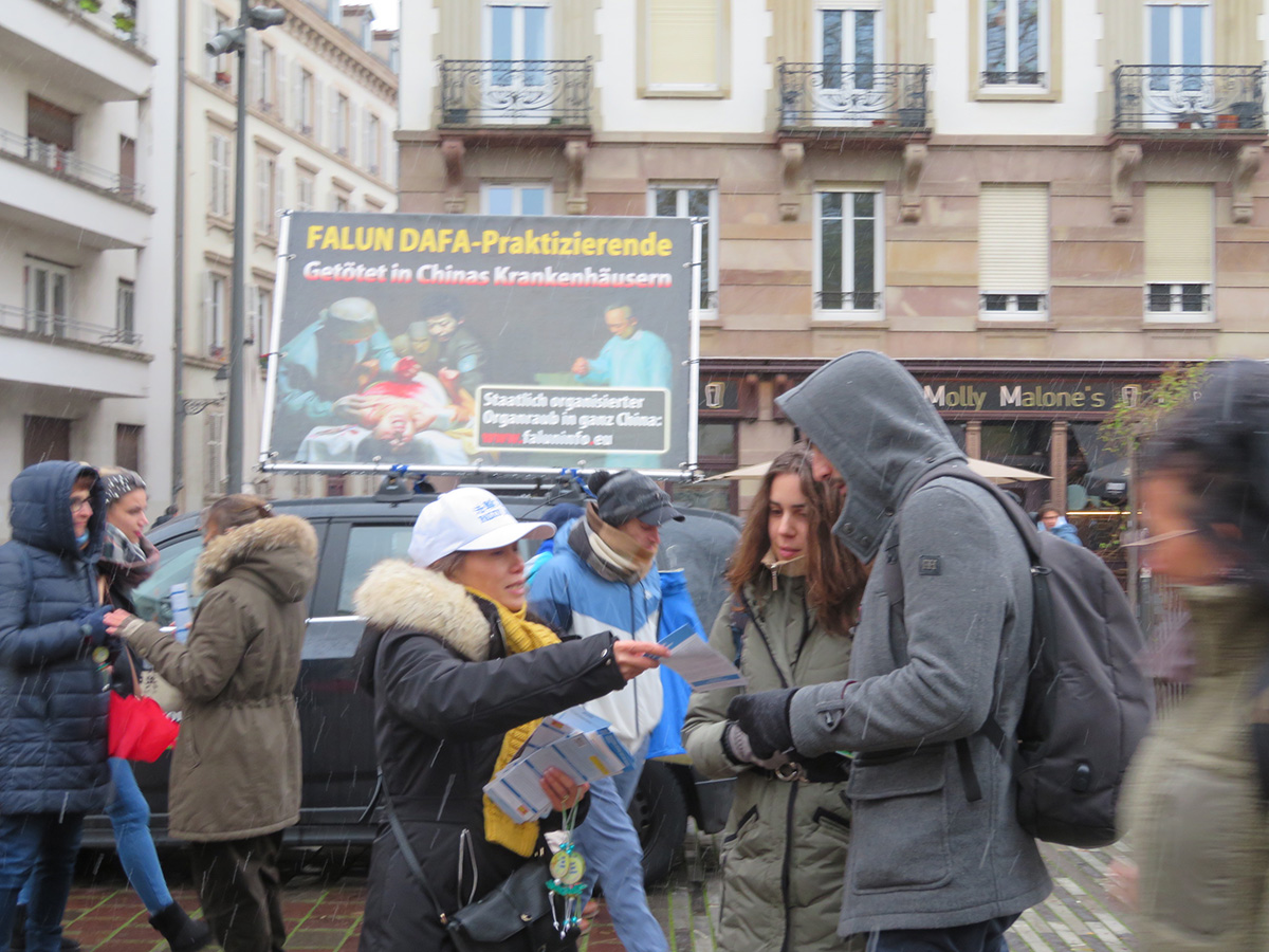 十二月九日和十日,在斯特拉斯堡的奥斯特里茨广场(Place d’Austerlitz)和共和国广场(Place de la République),法轮功学员进行了讲真相和征集签名反迫害的活动。圣诞节将至,斯特拉斯堡的圣诞市场已经开启,这是欧洲最大的圣诞市场,每天都有成千上万的游人。法轮功展位就在通向圣诞市场的路上,为人们了解法轮功真相提供方便。