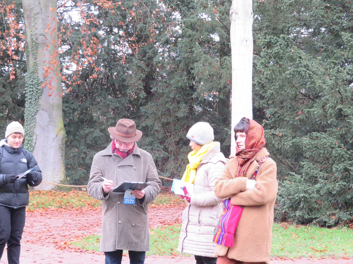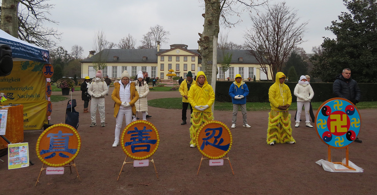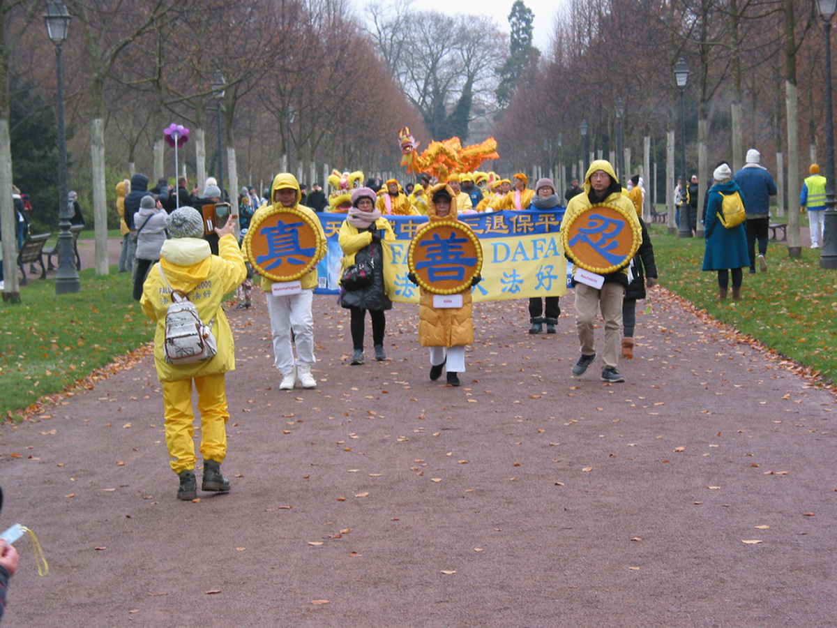 当地的橘树公园(Parc de l'Orangerie)是法轮功学员的炼功点。十二月十日和十一日两天,法轮功学员进行了游行、功法展示和烛光悼念活动。周末人们到公园锻炼、散步歇息,遇见法轮功分外欣喜。他们比去圣诞市场的人更有时间和耐心,认真倾听、了解真相。