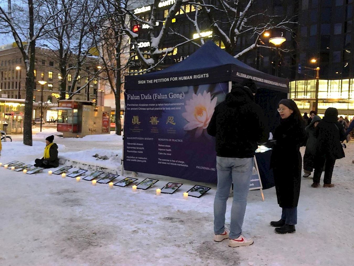 ![]() 图1~2:二零二二年十二月十日,世界人权日,芬兰法轮功学员在首都赫尔辛基市中心坎皮(Kamppi)商场附近举办活动,传播真相。 |