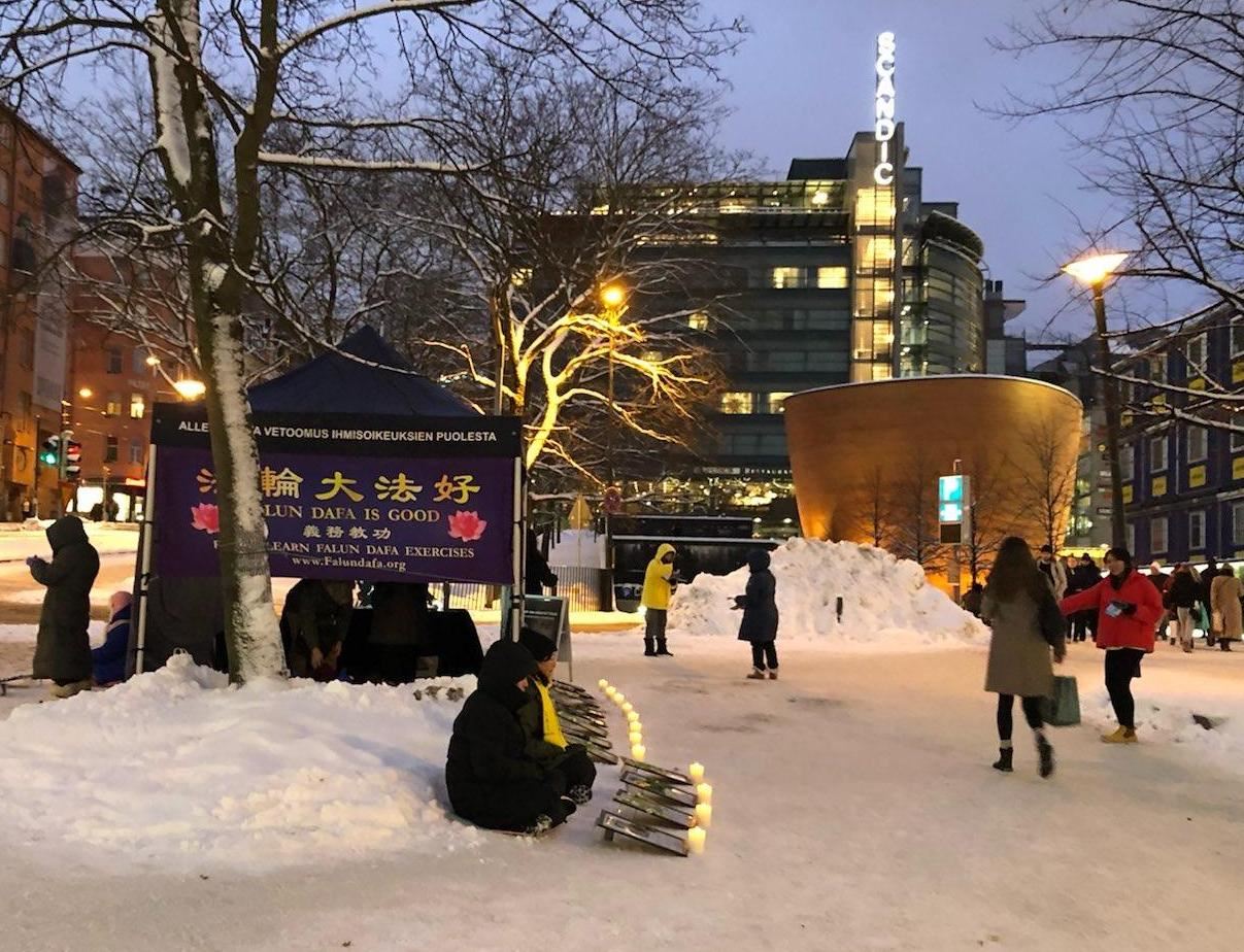 很多人都曾经从报纸上了解到中国的人权状况。有一位芬兰人起初并不相信这些暴行会发生在中国,在向学员了解事情的真相后,这位芬兰人轻轻地拍了拍学员的肩膀,说在芬兰做这些传播真相的活动是有意义的。得知现场有法轮功学员曾因为信仰在中国遭到迫害,最后逃离中国在芬兰定居的故事后,四位女士流下了眼泪,并拥抱了学员,祝愿学员们未来一切顺利。