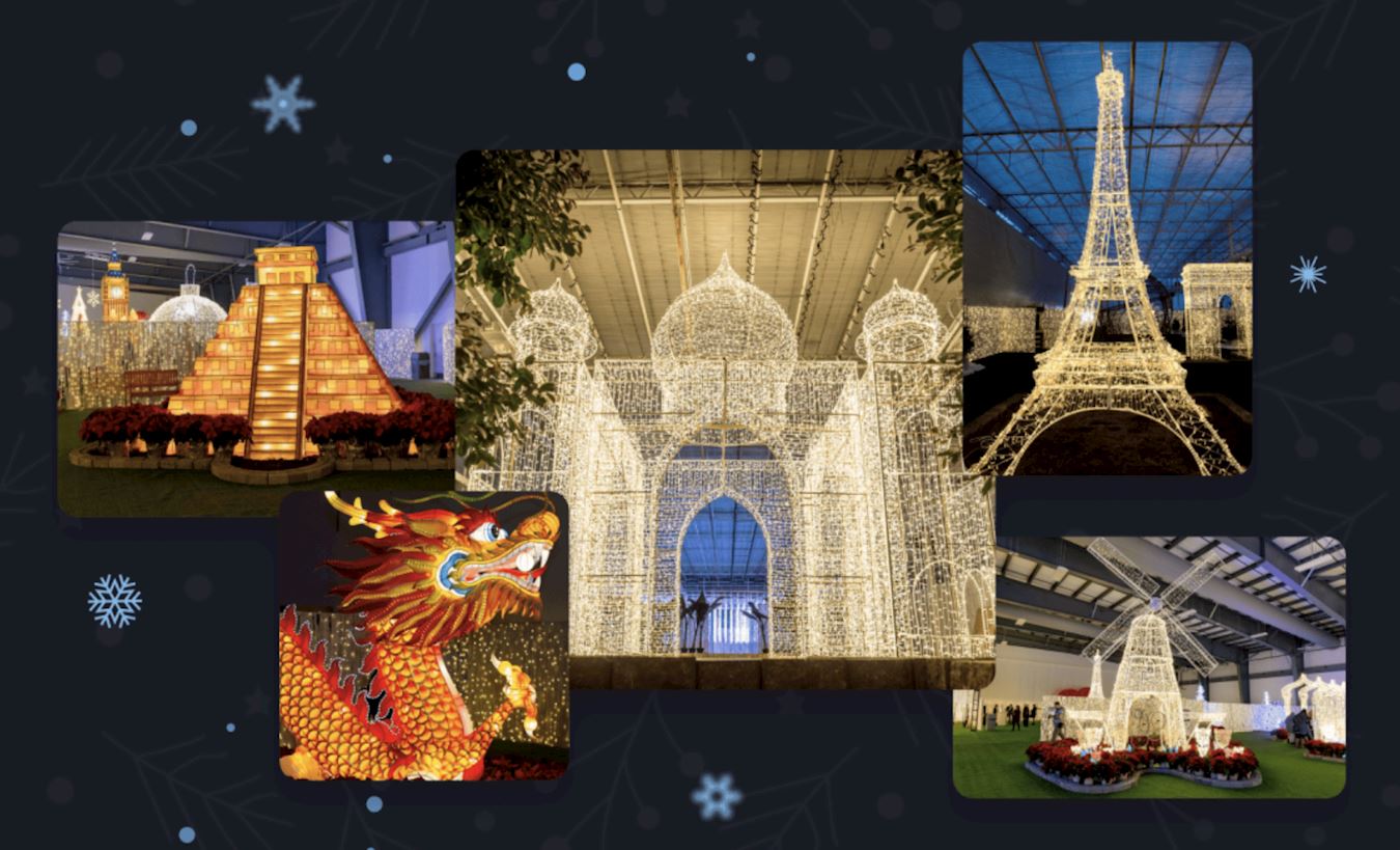 今年圣诞灯光展的主题是周游世界。主办方用超过一百万盏小灯展示了六个国家的著名景点及特色文化。灯展用艺术的方式还原了中国、印度、法国、墨西哥、英国、和荷兰的景象。