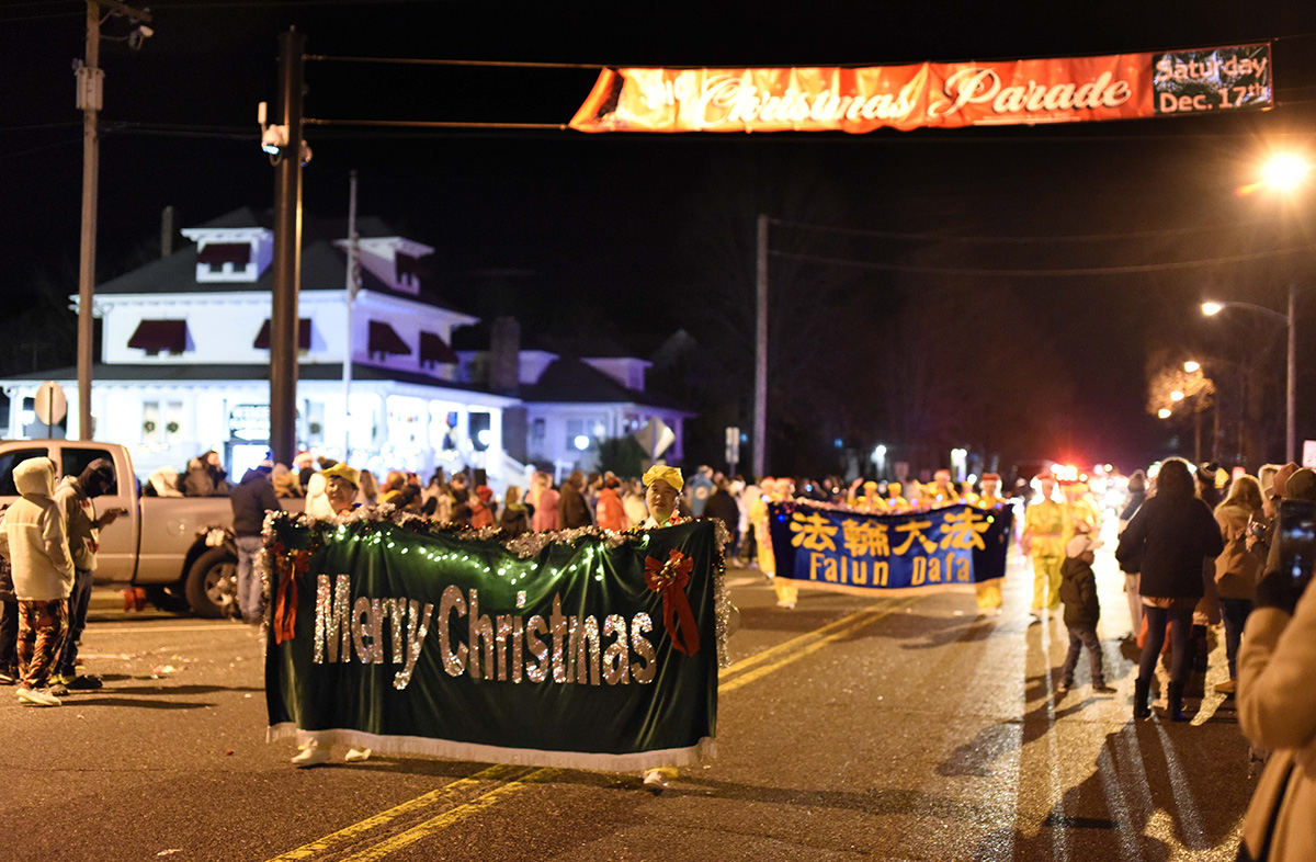 ![]() 图1~2:二零二二年十二月十七日,由法轮功学员组成的纽约腰鼓队参加了在新泽西州海滨度假地蛋港市(Egg Harbor)举行的圣诞游行。 |