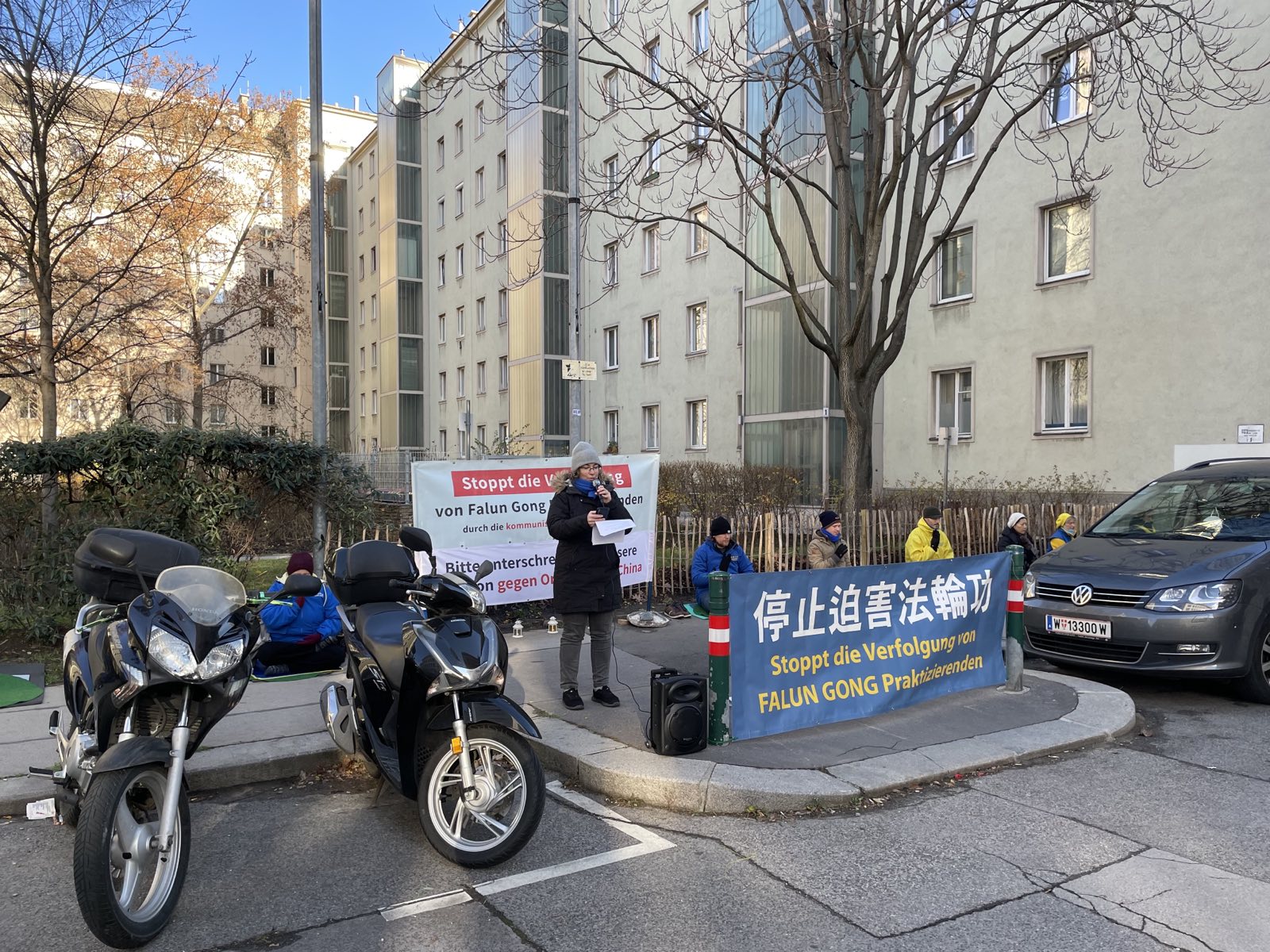 活动期间,学员们还就酷刑和活摘器官罪行而向奥地利政府递交的请愿书征集签名。一位经常路过的女士在当天看到这么多的修炼者并且倾听了发言,她在请愿书上签上了自己的名字。