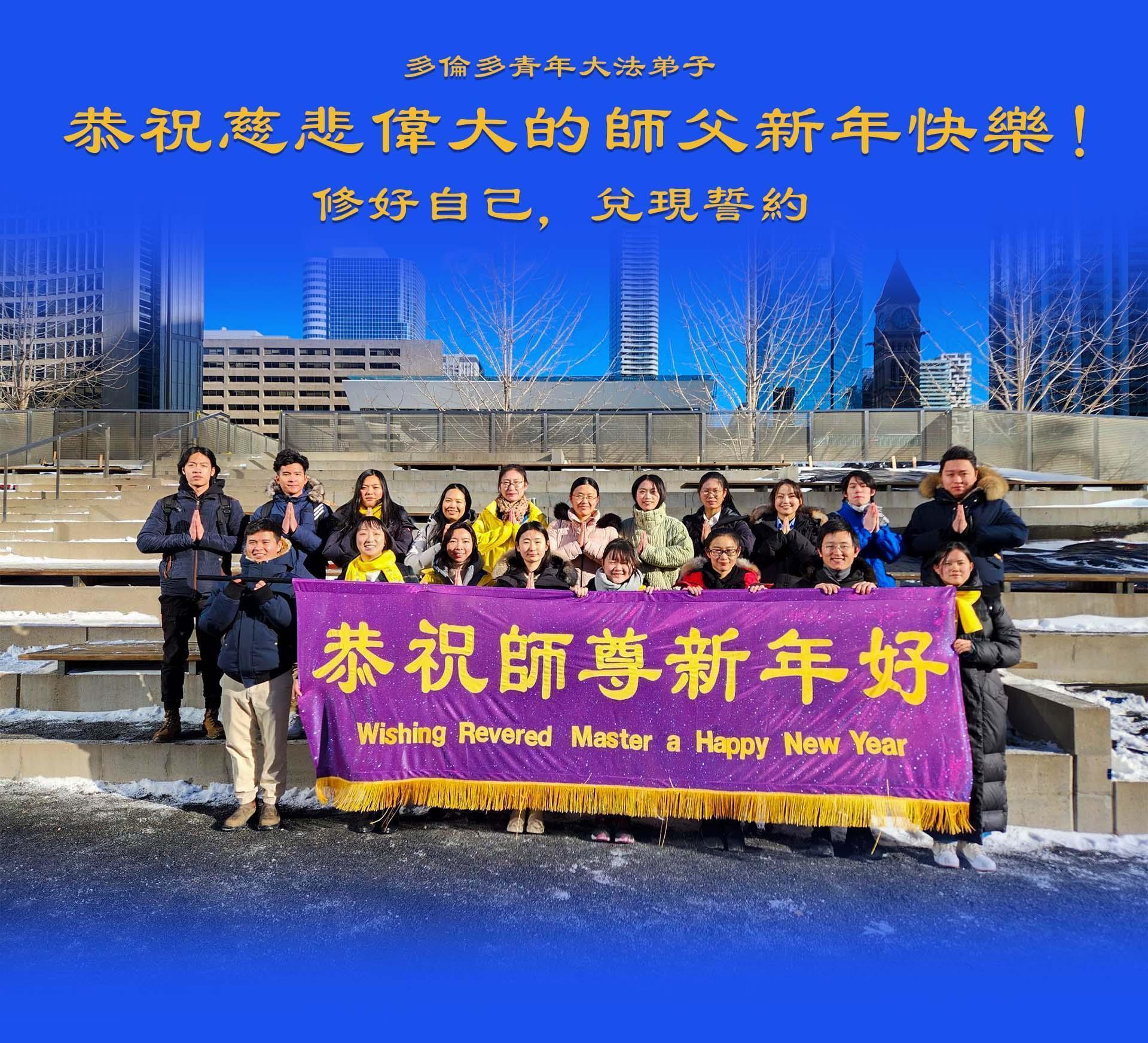 ![]() 图2~3:多伦多青年大法弟子恭祝慈悲伟大的师尊新年快乐!他们决心修好自己,兑现誓约! |