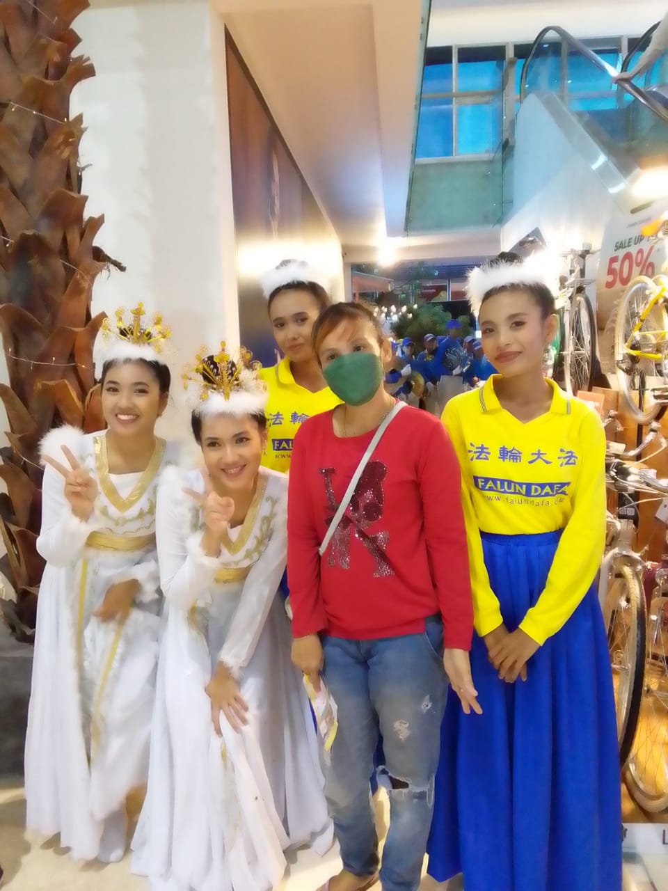 玛丽亚(Maria),来自峇里岛古搭区(Kuta)和丈夫孩子一起观看演出。和学员交谈后,获得了关于法轮大法的讯息之后,她表示想要参加在金巴兰(Jimbaran)的集体炼功。她还说自己有脾气不好、易怒和压力大的问题,很久以前就有意想学习打坐但是还没遇到适合的手法。今天,很高兴能遇见法轮大法并了解了真相。以前听说过法轮大法在中国是被迫害的,因此有些难过忧郁。后来知道法轮大法已在中国以外的一百多个国家并且有很多人在学炼法轮功,她心里就坚定地想要跟着学。