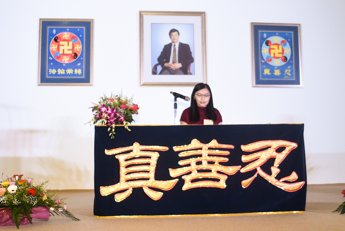 在法会上发言的鱼女士说:“特别是刚才六岁大法小弟子分享的特别好,很感人,我真的在那边落泪。因为我有孩子,孩子的状态反映父母的状态,我觉得还有很多需要改进的地方,通过这个大法小弟子,激励我去好好实修。”她还说:“我们的同修去跟中国人讲真相,不轻易放过任何一个有缘的人,这个我很感动。”