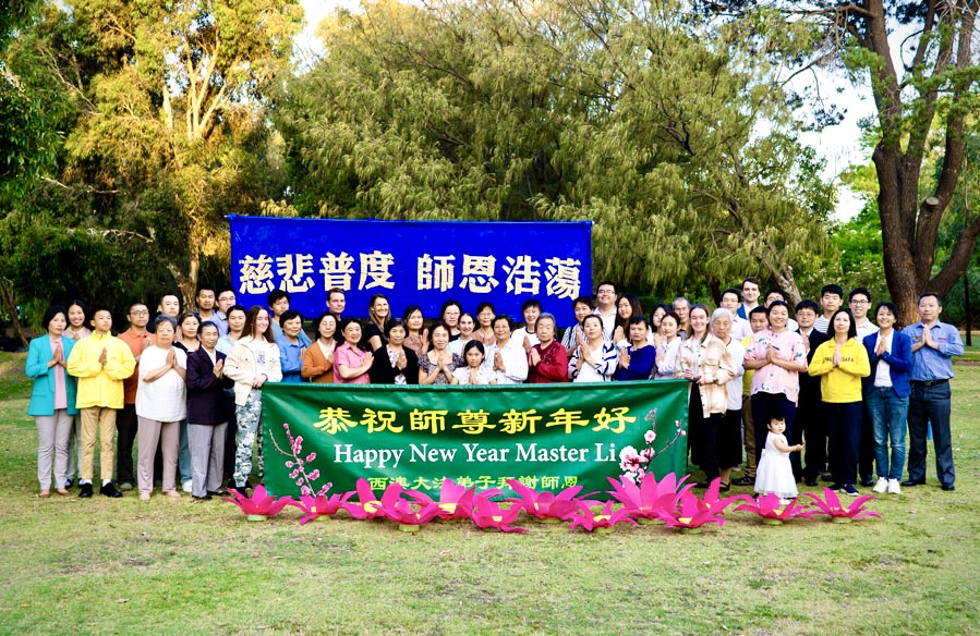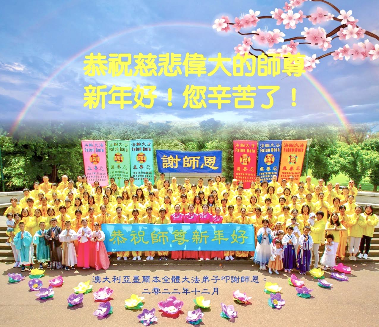 ![]() 图2:澳洲墨尔本法轮功学员恭祝师父新年好 |