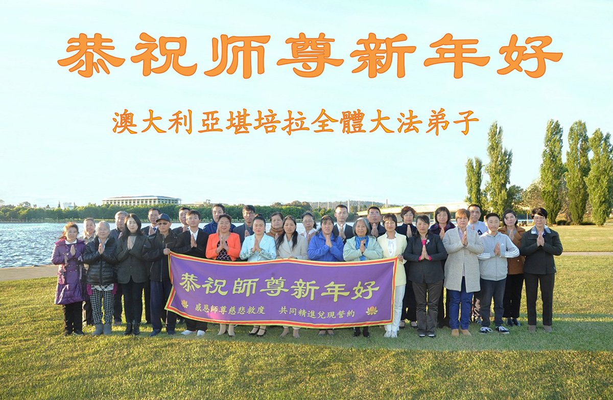 ![]() 图7:澳洲堪培拉法轮功学员恭祝师父新年快乐 |