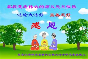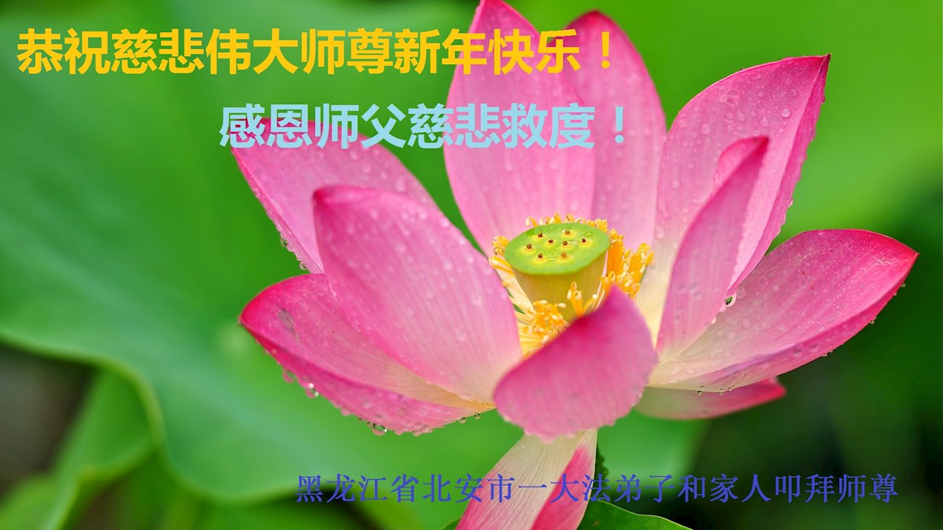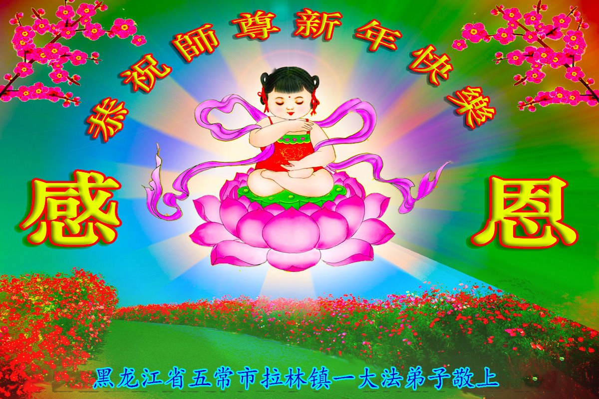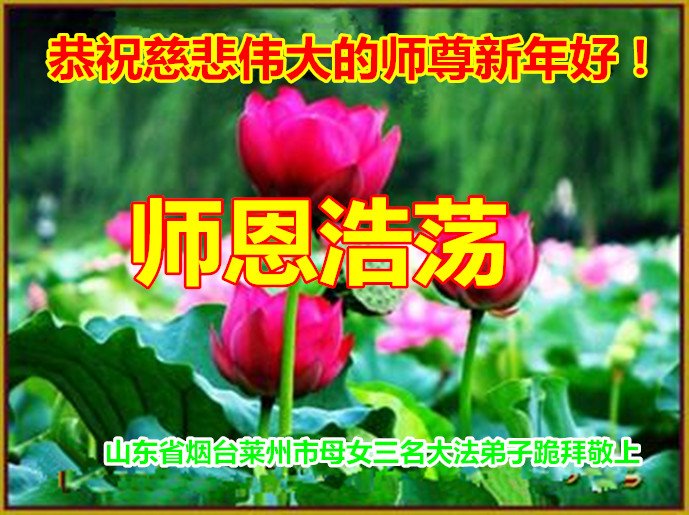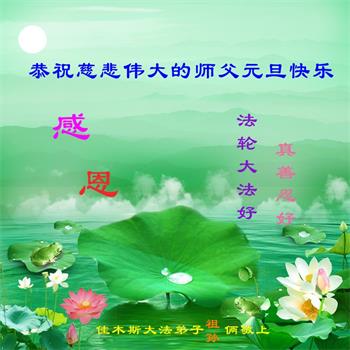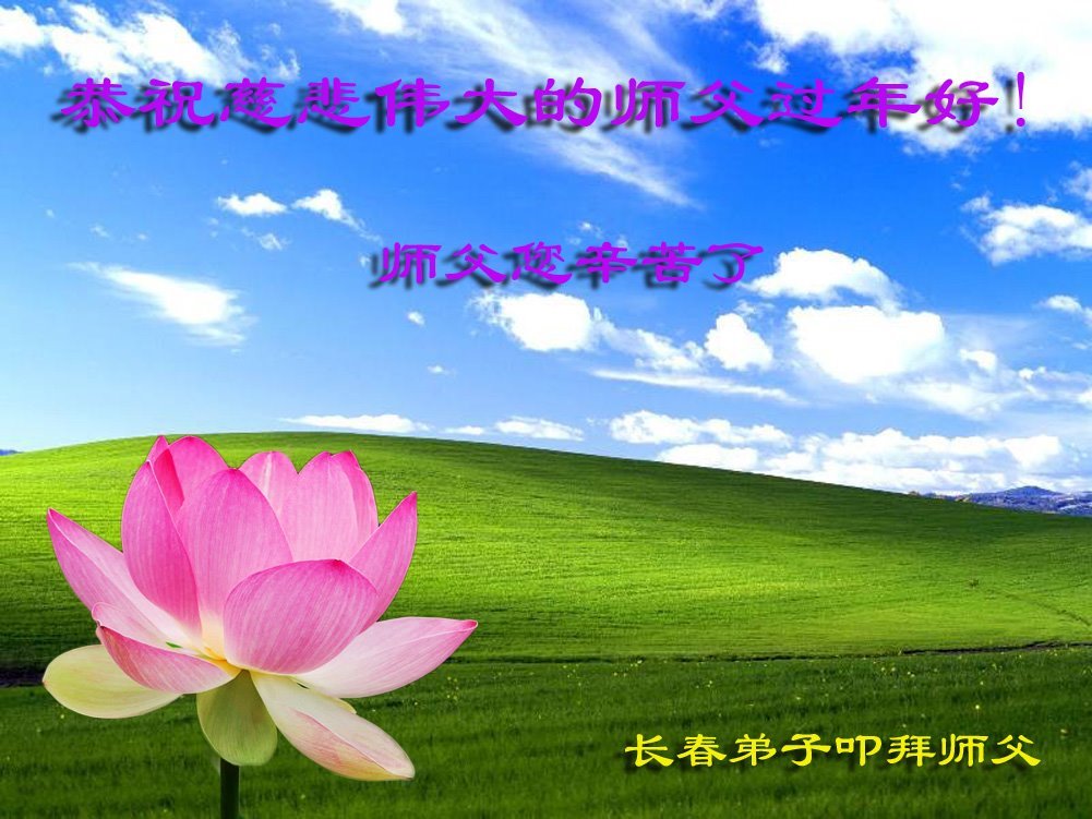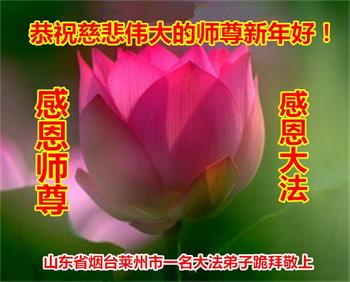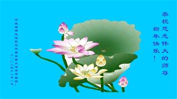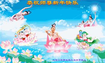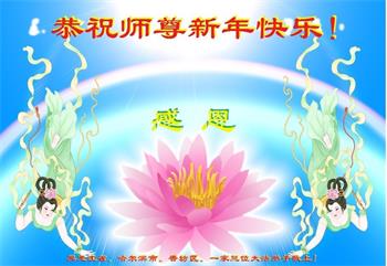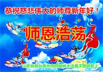 感谢大师教导的弟子多年来为救度众生的辛苦付出,您的弟子太了不起了!我们一定倍加珍惜大法给我们的恩惠,感谢大师的浩荡洪恩!谢谢李大师,再次恭贺大师新年快乐!