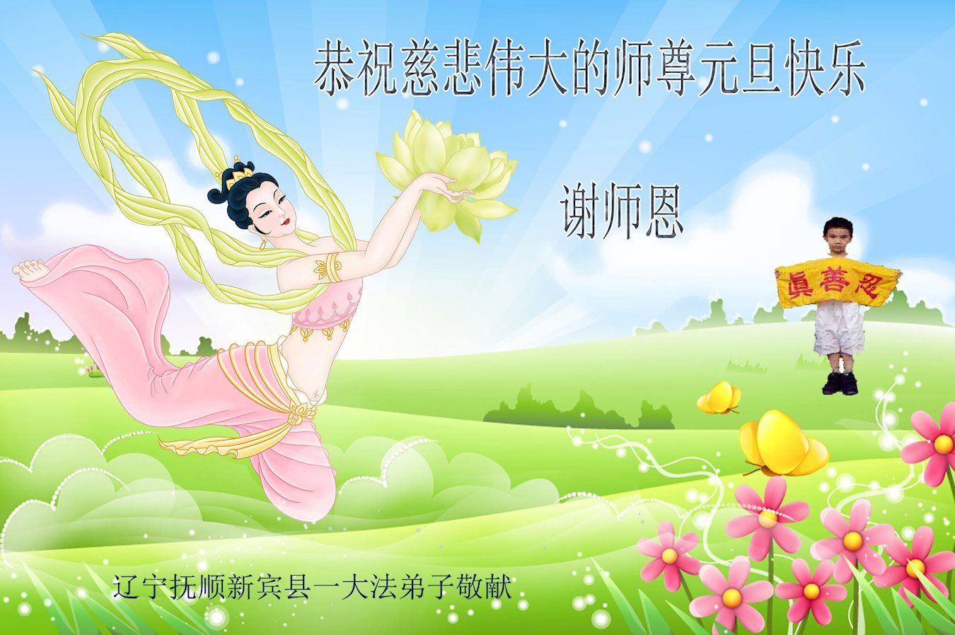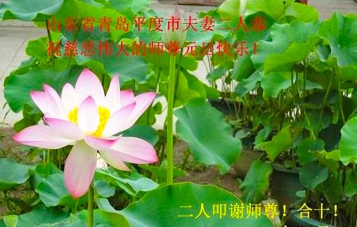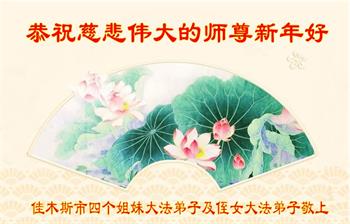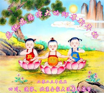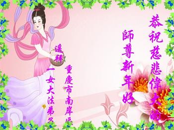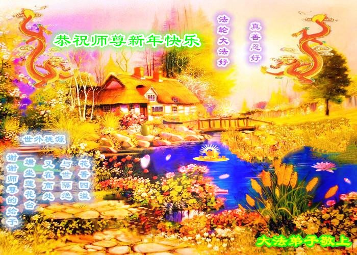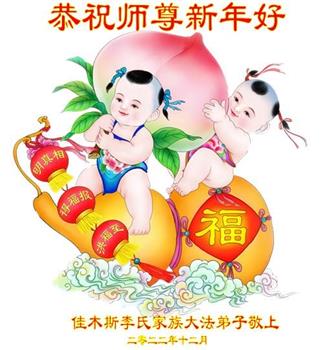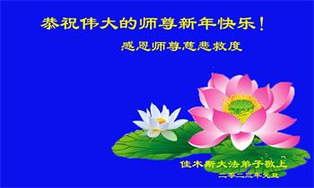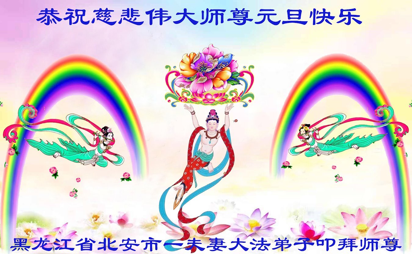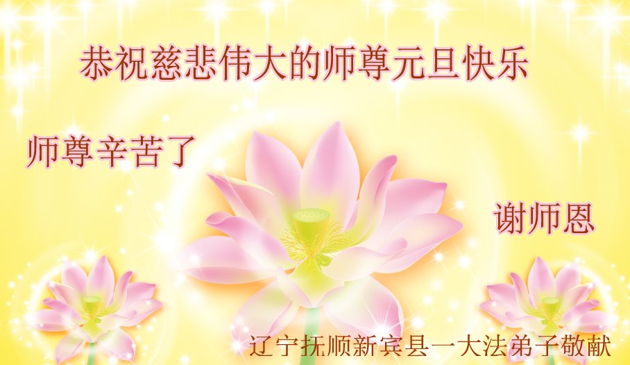 感谢大师教导的弟子多年来为救度众生的辛苦付出,您的弟子太了不起了!我们一定倍加珍惜大法给我们的恩惠,感谢大师的浩荡洪恩!谢谢李大师,再次恭贺大师新年快乐!