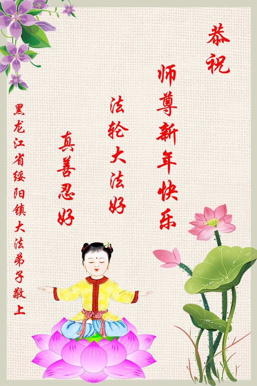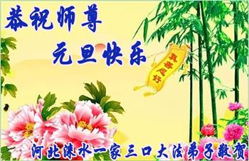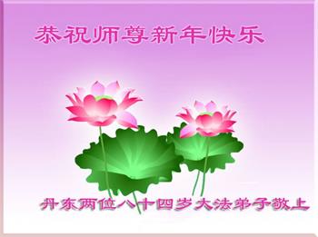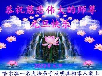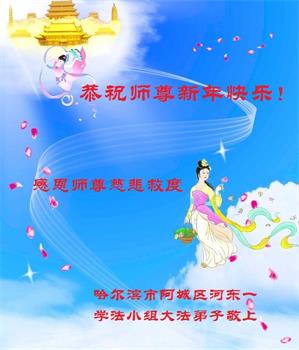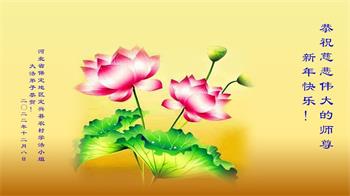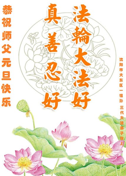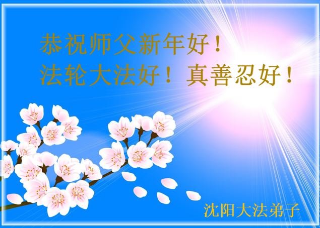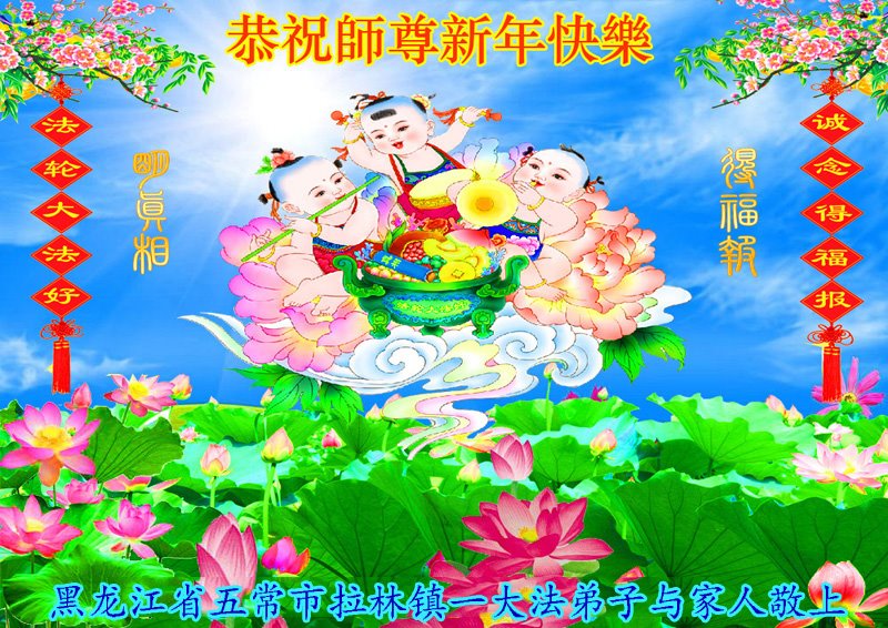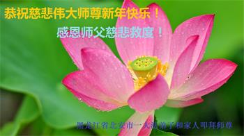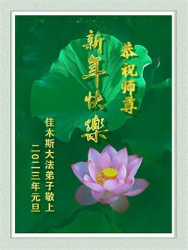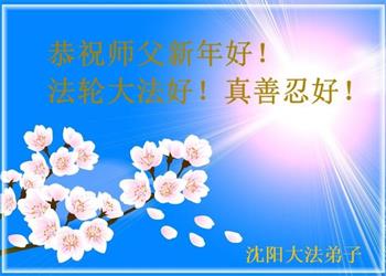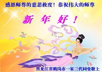 中共对大法的造谣诬陷,我们根本不相信。我们家得了大法修炼的,二十多年来,一直修炼,不管环境好坏,对师父和大法的信念不动摇,会一直跟随师父走到底。没有修炼的人也相信“法轮大法好”、“真善忍好”,并经常默念,身心健康,家庭和睦。感恩师父!恭祝师父新年快乐!