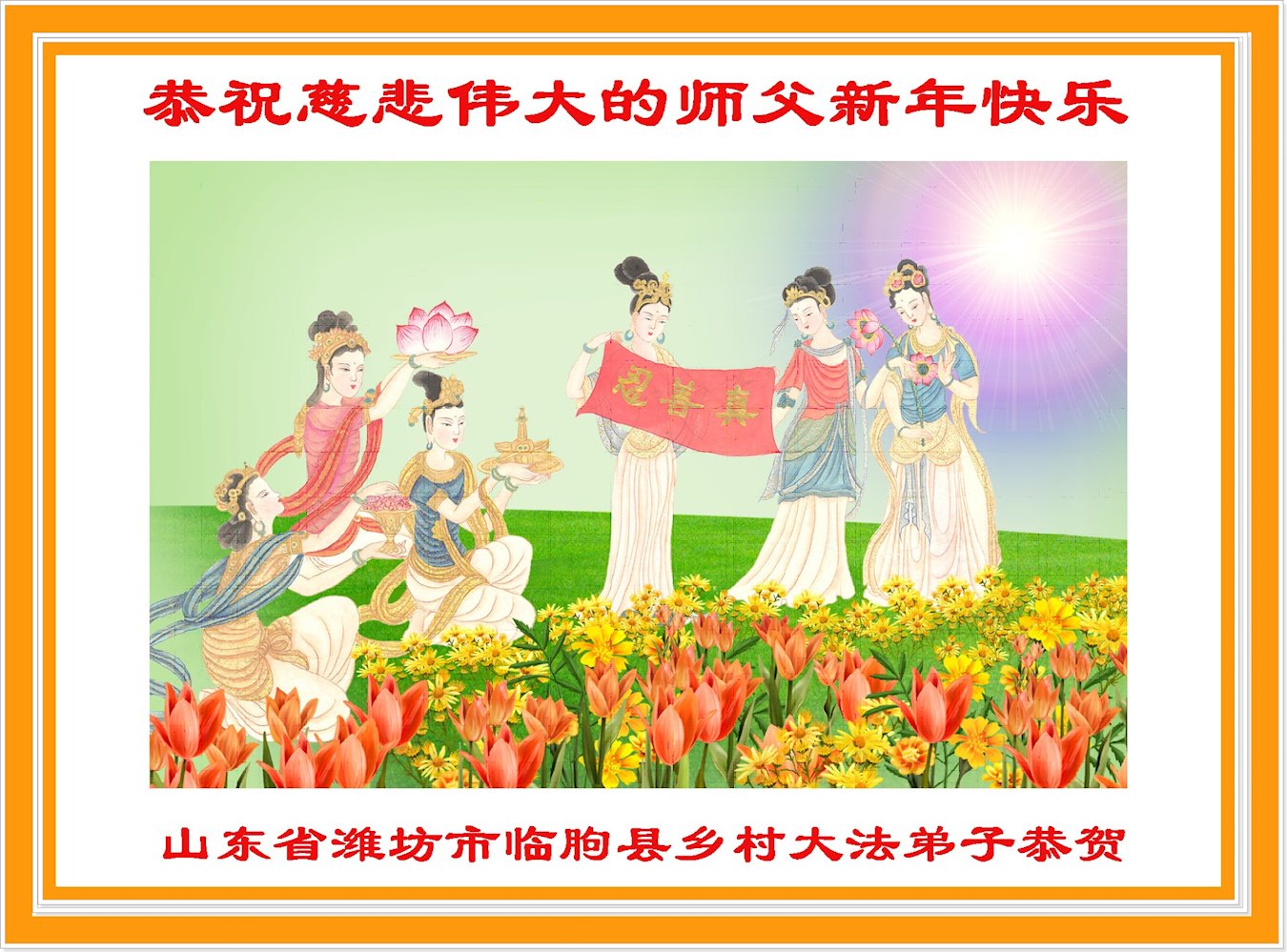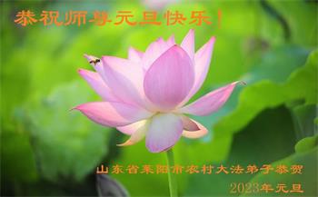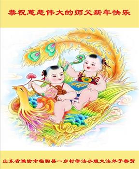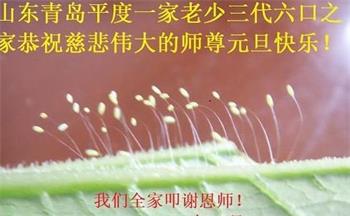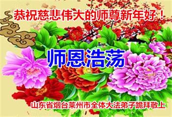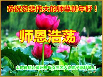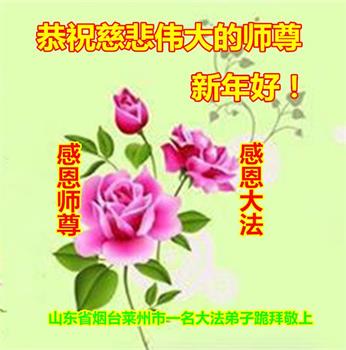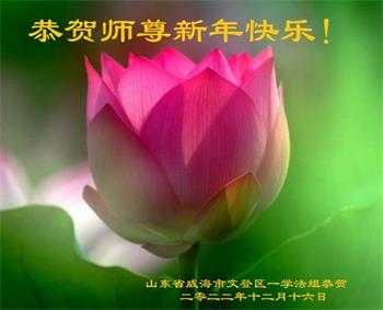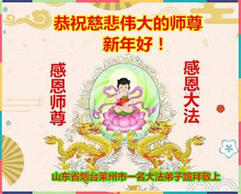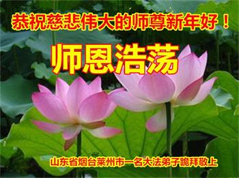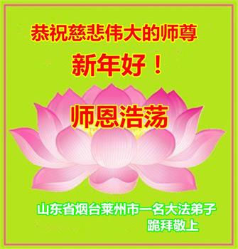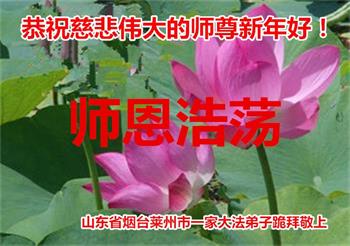 山东省威海市荣成市百姓问候尊敬的李大师新年好!他说:“现在人类正处在一个极不平凡的时期,特别是近三年来中共病毒席卷全球,危及人类的生命,我们更加感谢法轮大法给人类带来了光明与希望。我们天天诚心念诵‘法轮大法好,真善忍好’九字真言,上百遍的念,因此我们全家人个个平安无恙,感谢大师的救度之恩!”