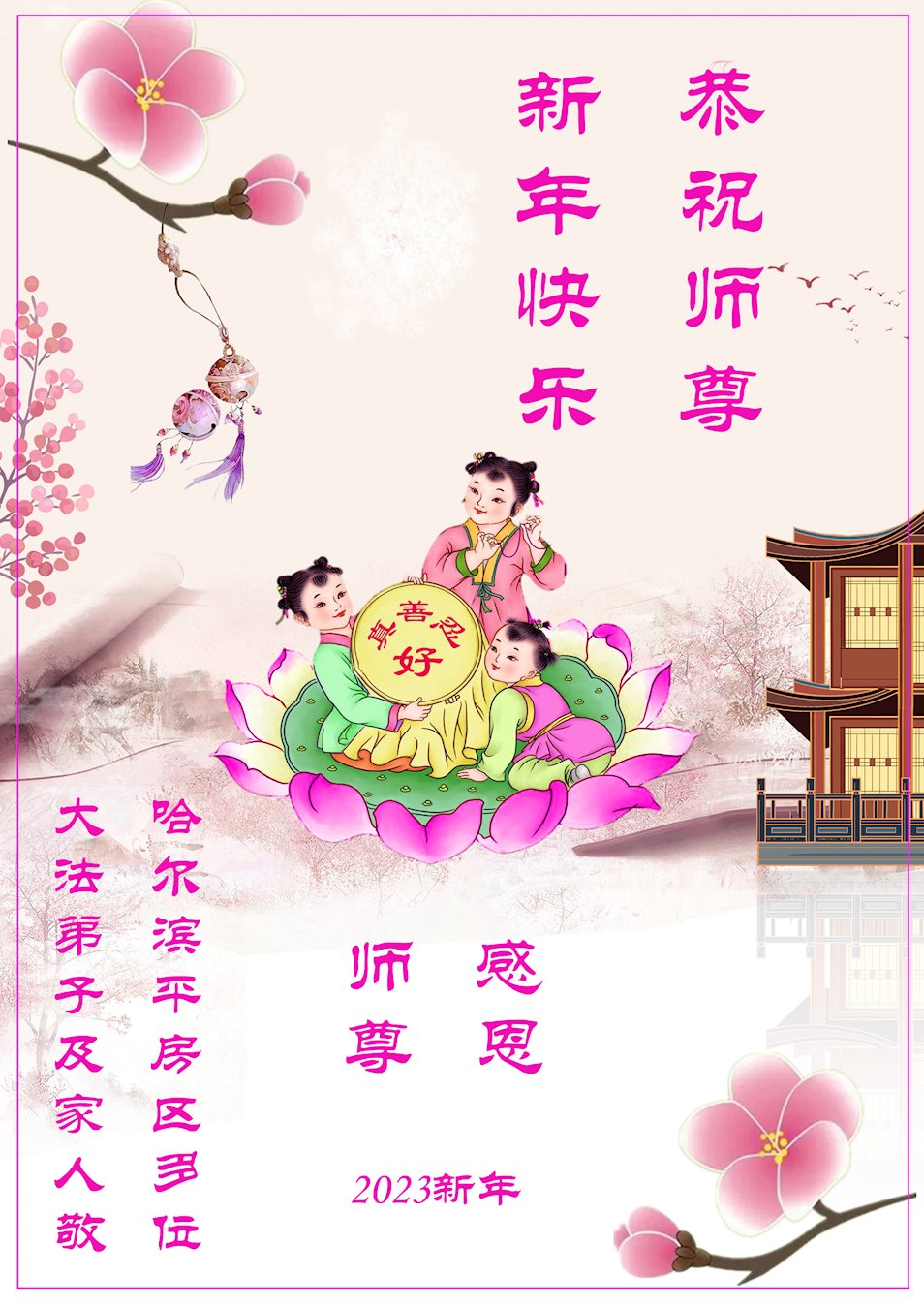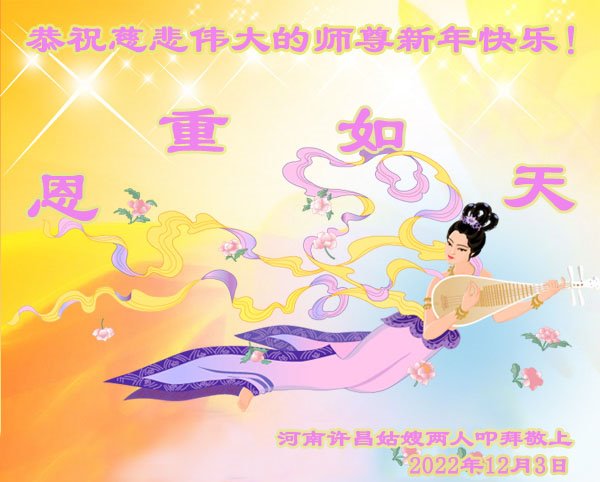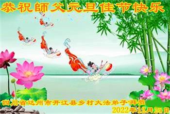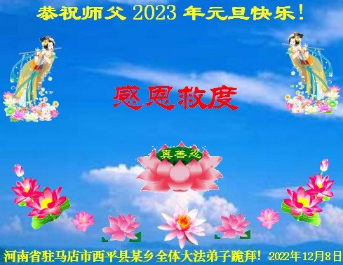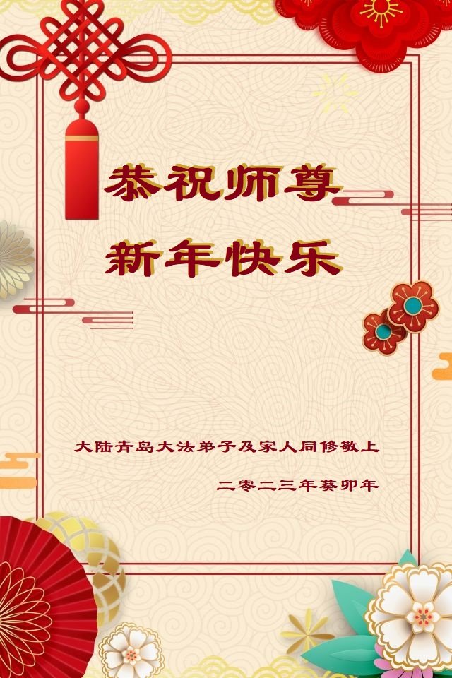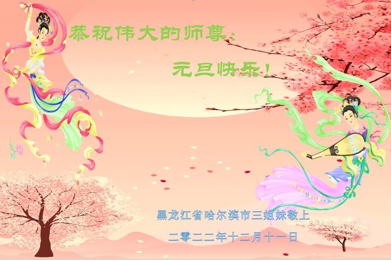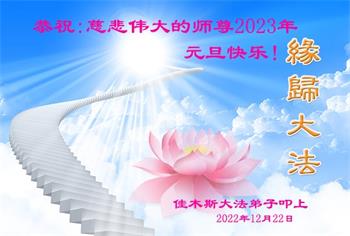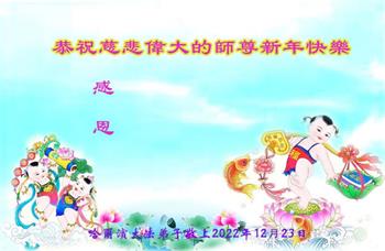 【明慧网二零二二年十二月二十九日】(明慧网通讯员综合报道)2023年新年的钟声即将敲响,中国大陆众多民众走过三年疫情的阴霾后,感受到“法轮大法好,真善忍好”九字真言的威力,看到了李洪志师父的慈悲和大法弟子的善良,诚心向李洪志大师问候,敬拜李洪志大师新年好!