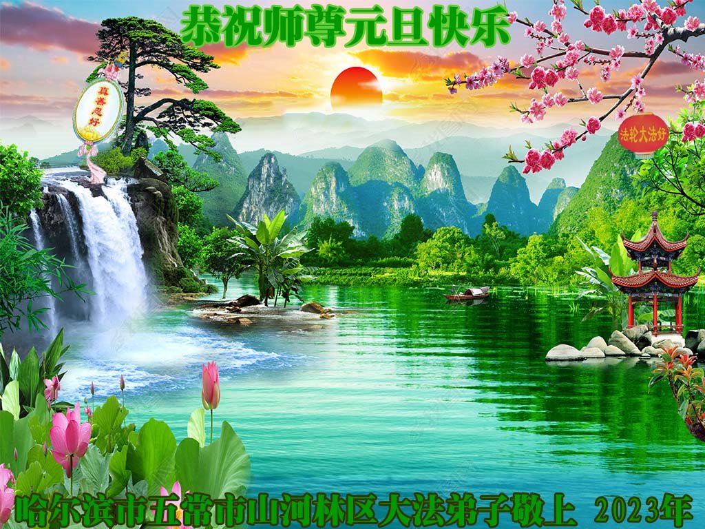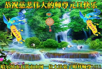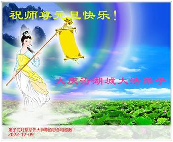 慈悲、伟大的师尊,您好!法轮飞旋,光阴如梭,洪贯全天体的正法洪势迅不可挡,已向法正人间过渡。在这万古不遇的关键时刻,在公历二零二三年的新年即将到来之际,中铁第十一工程局的全体大法弟子,远在中国大陆,遥望师尊!磕头跪拜师尊!恭祝慈悲伟大的师尊新年快乐!