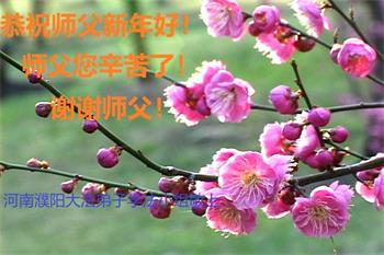 弟子遵循师父的教诲:多学法,学好法,讲清真相多救人。请师父放心,让师父欣慰!弟子再次恭祝师父新年好!