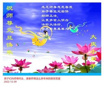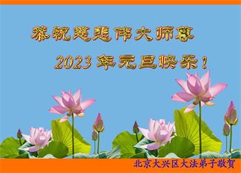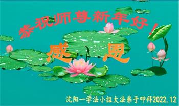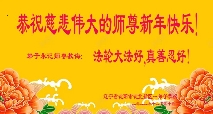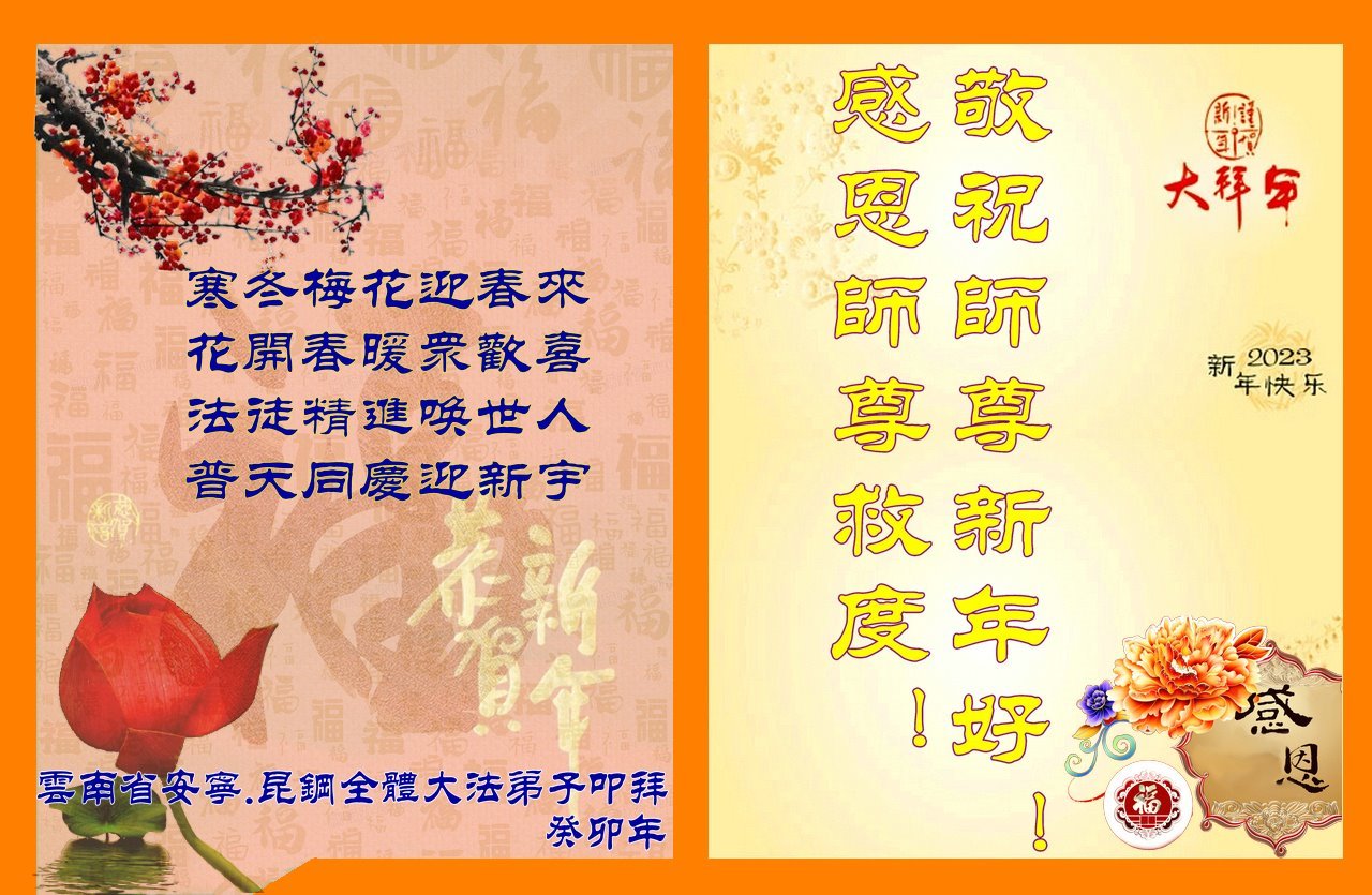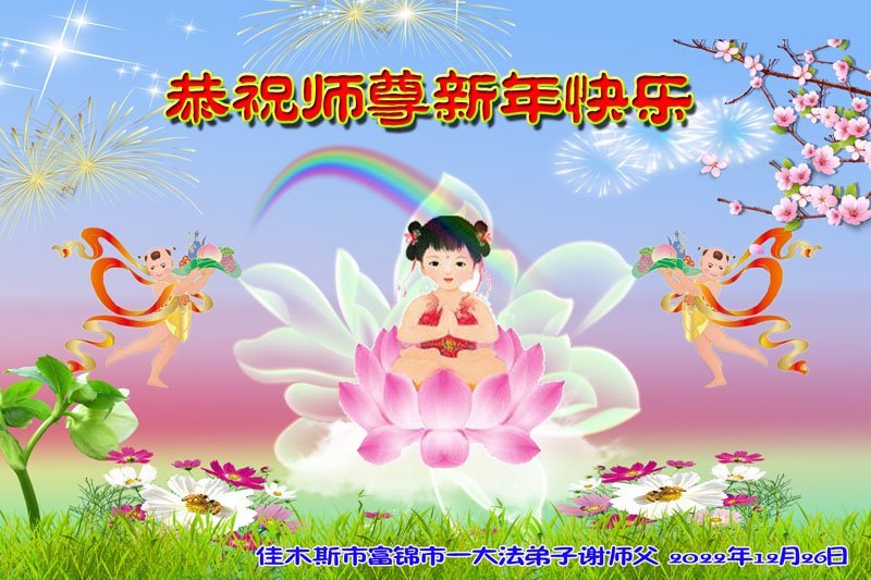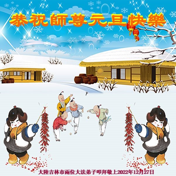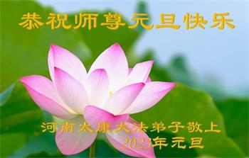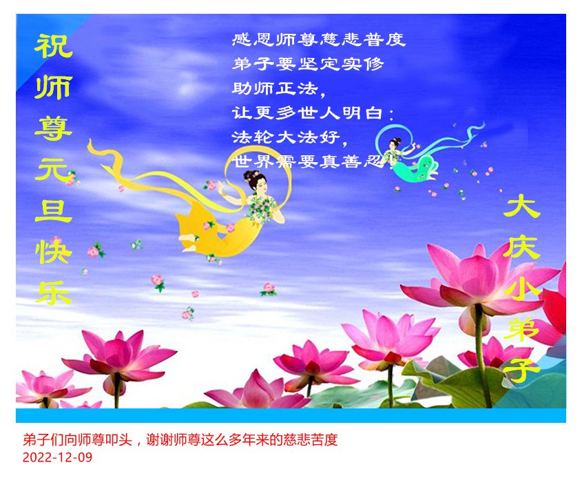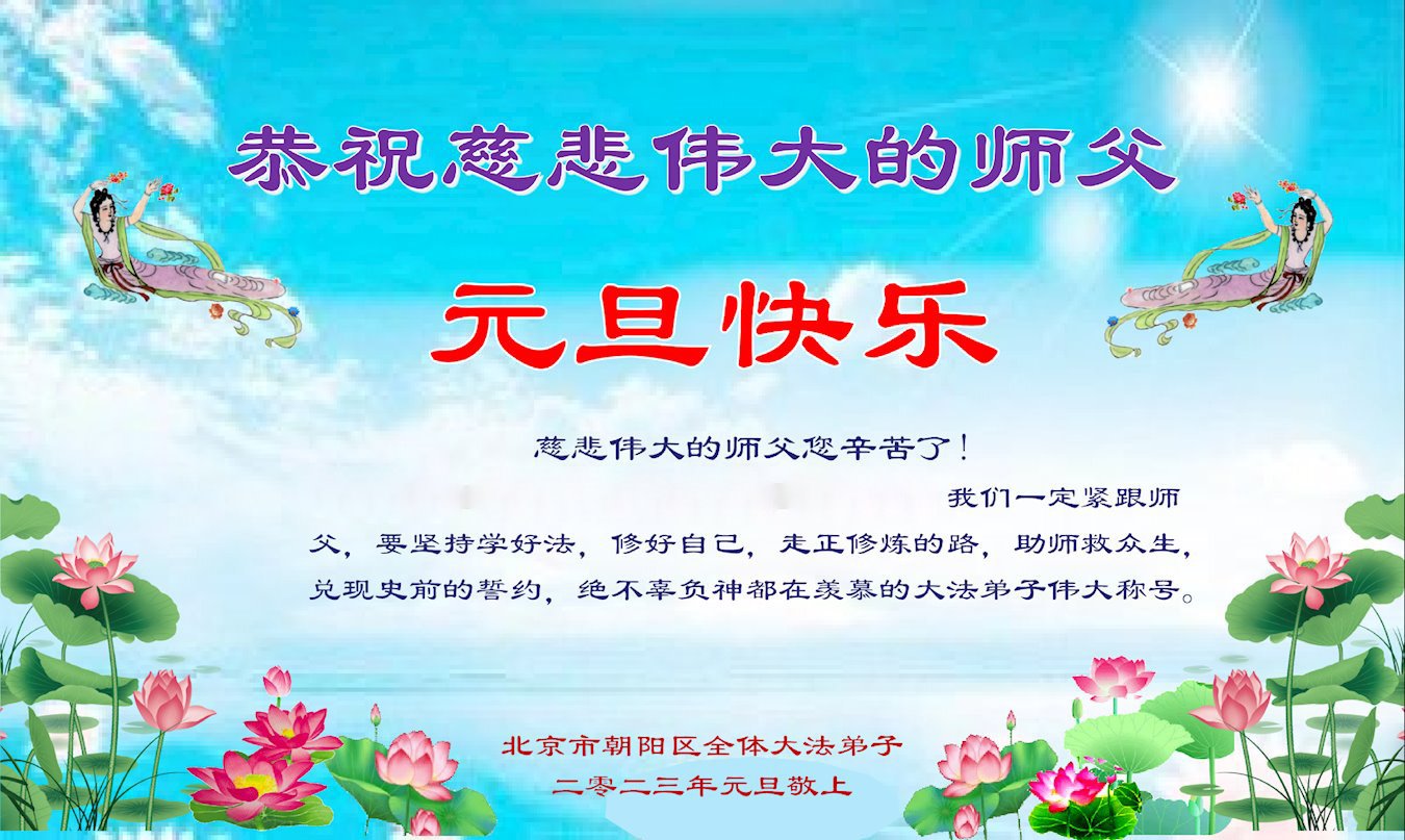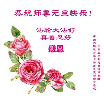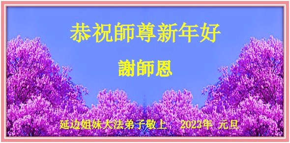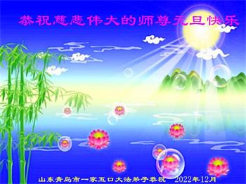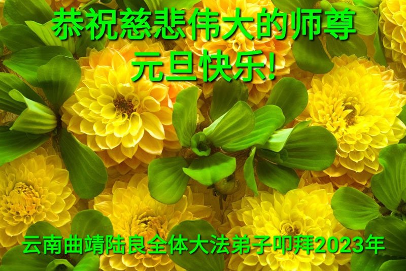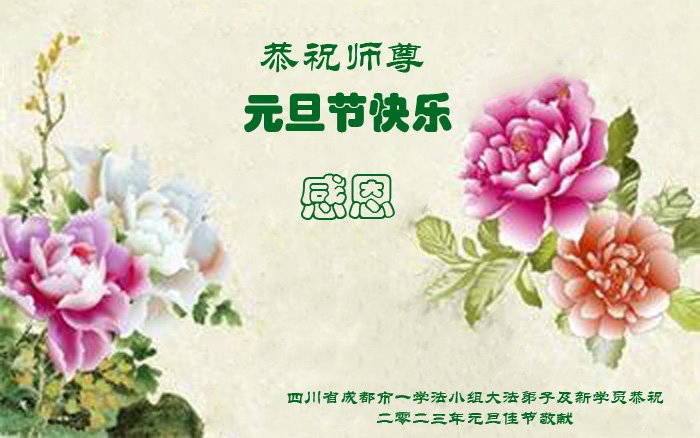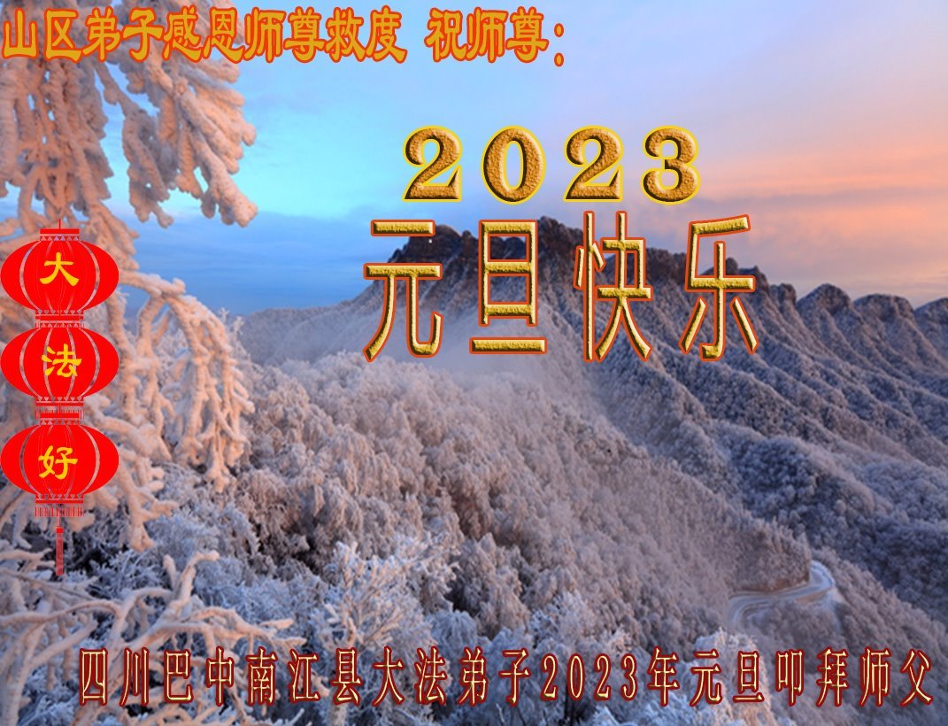 【明慧网二零二二年十二月三十一日】(明慧网通讯员综合报道)中国大陆的法轮功新学员感到万分幸运,在危机四伏的末劫之时得到法轮大法,感受到师尊无所不在的看护,体悟大法的洪恩浩荡。在2023年元旦来临之时,新学员们恭祝师父元旦快乐!