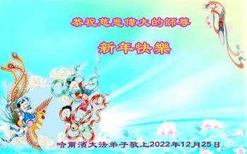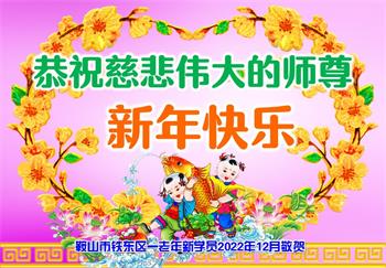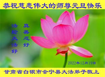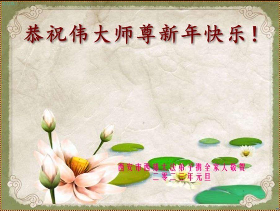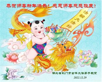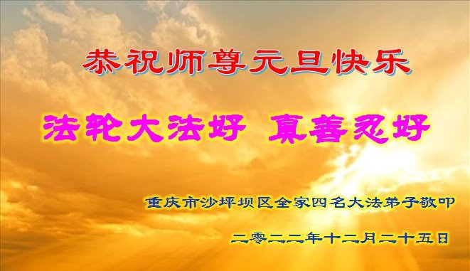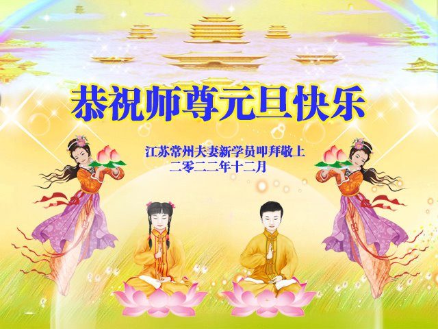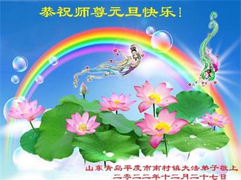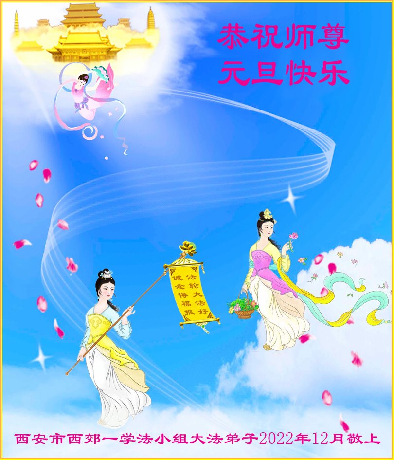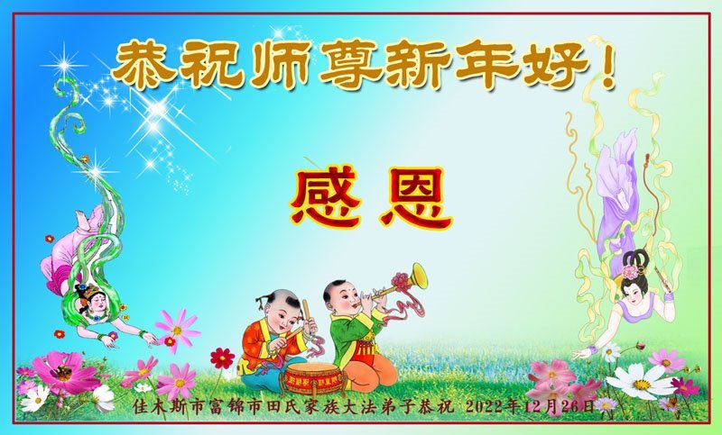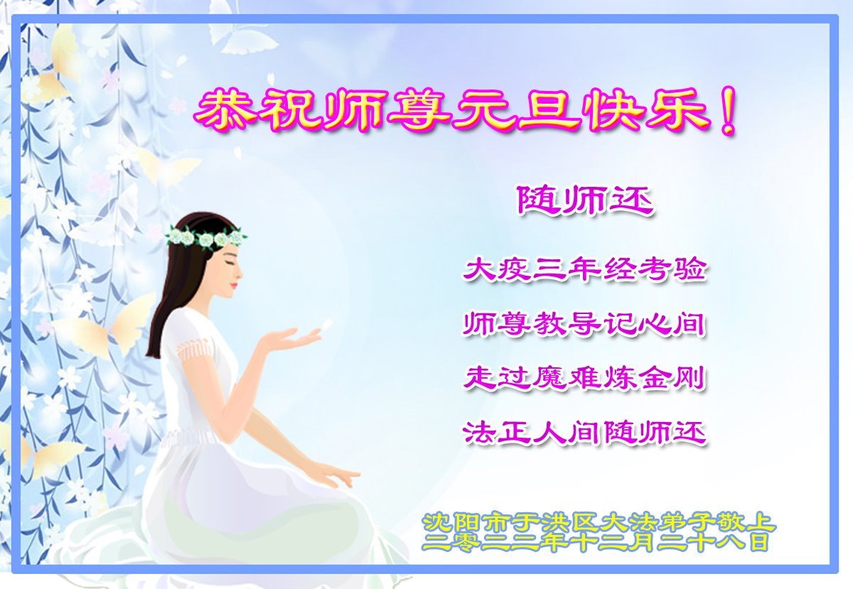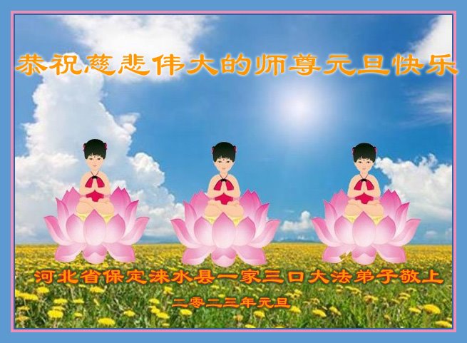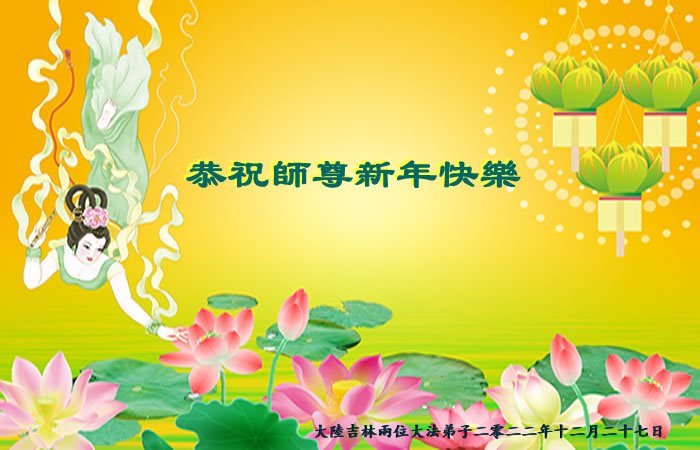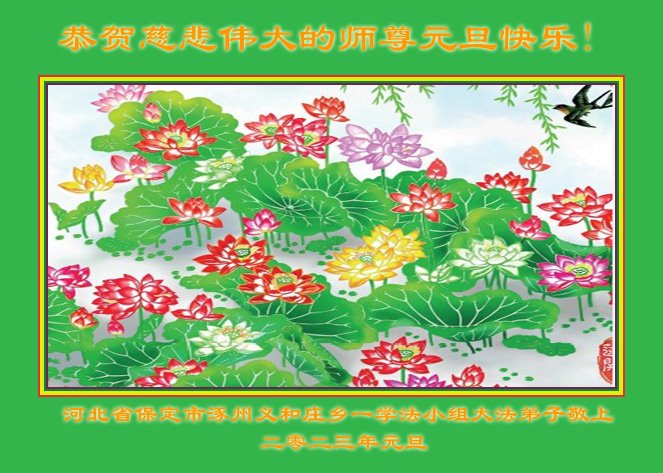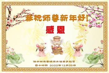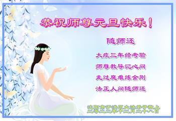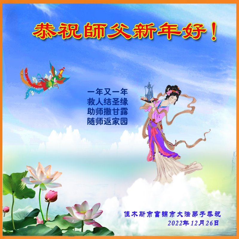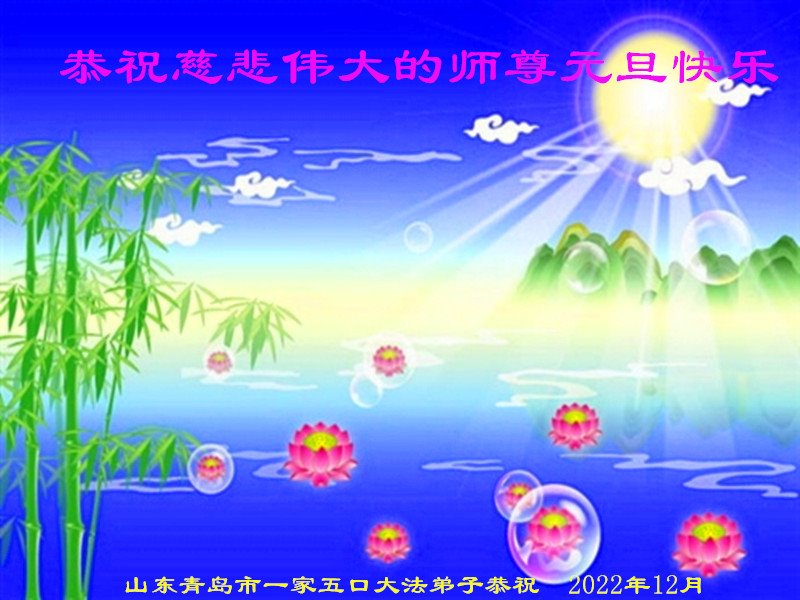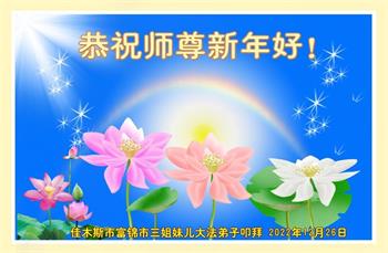 【明慧网二零二二年十二月三十一日】(明慧网通讯员综合报道)中国大陆的法轮功新学员感到万分幸运,在危机四伏的末劫之时得到法轮大法,感受到师尊无所不在的看护,体悟大法的洪恩浩荡。在2023年元旦来临之时,新学员们恭祝师父元旦快乐!