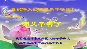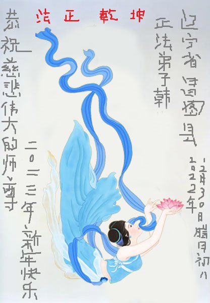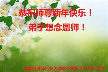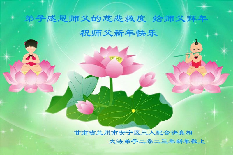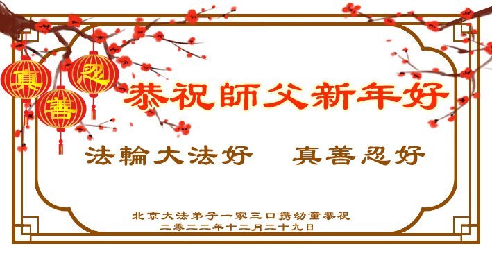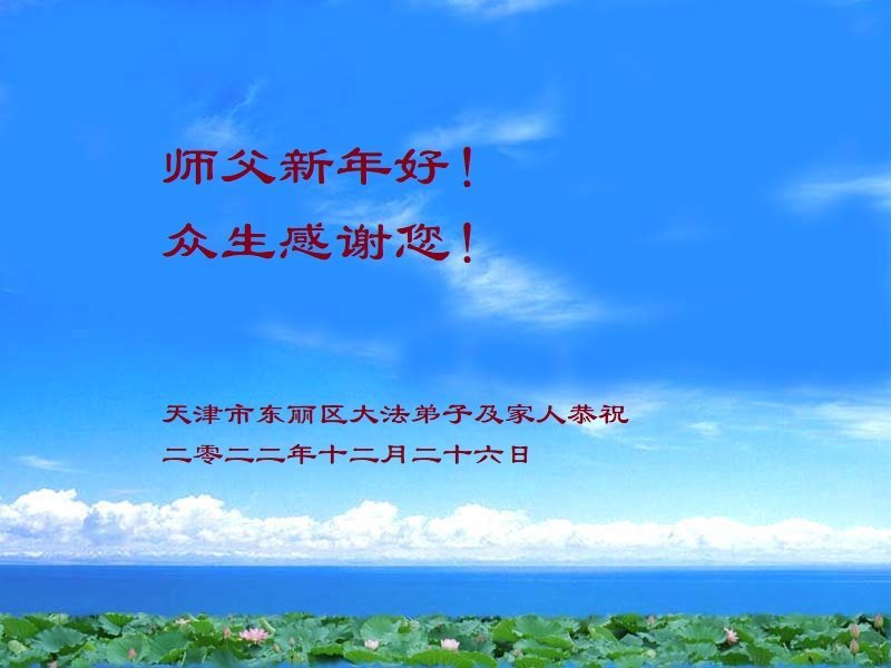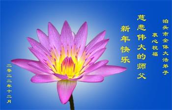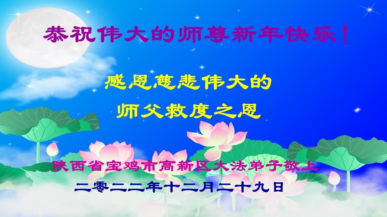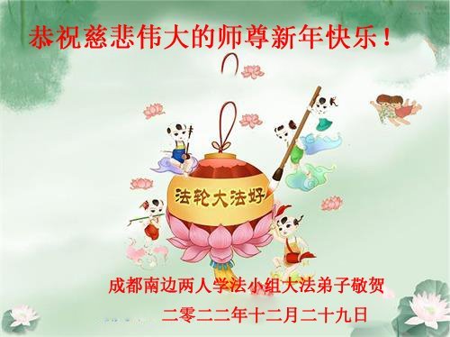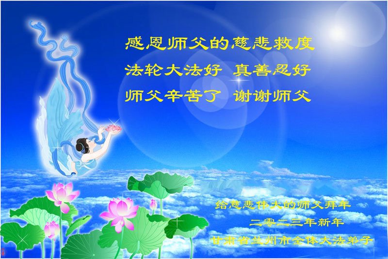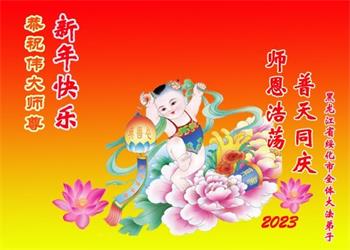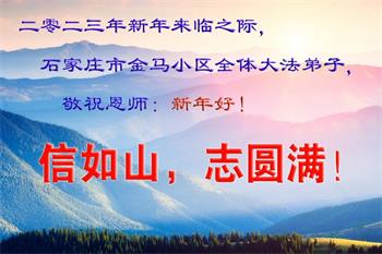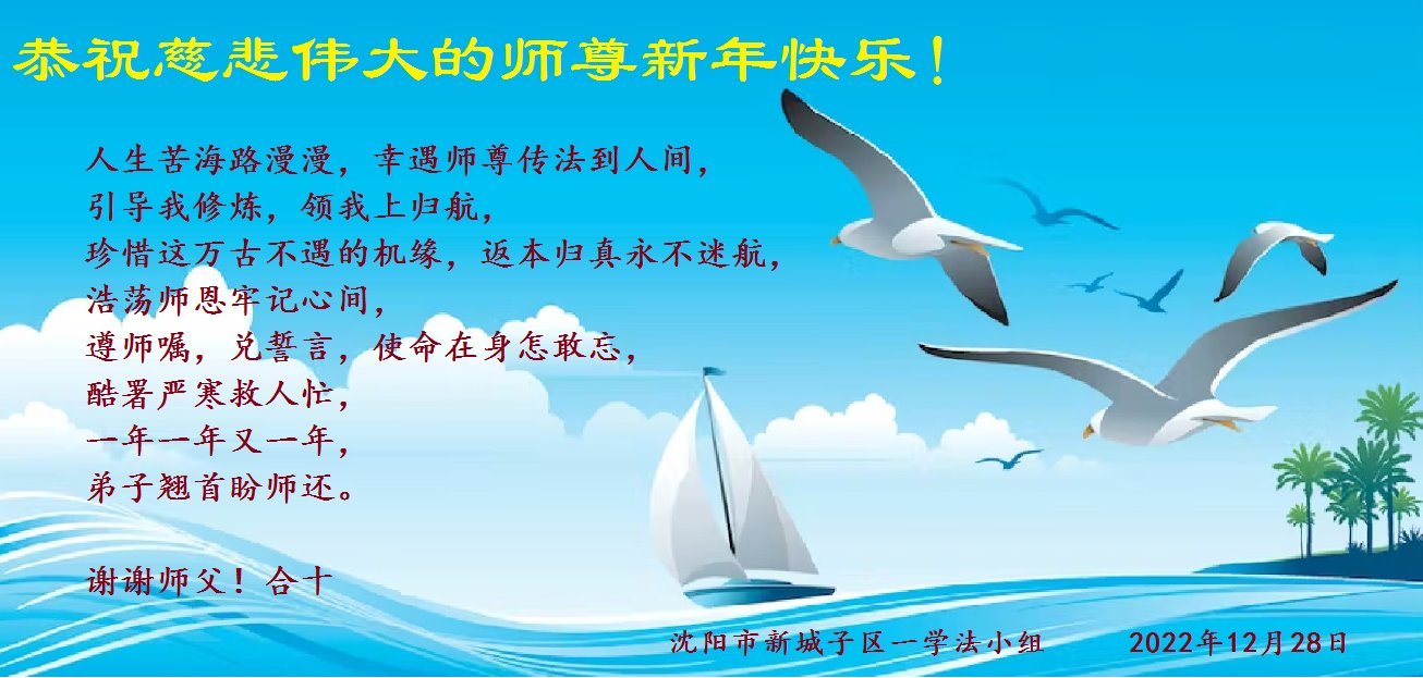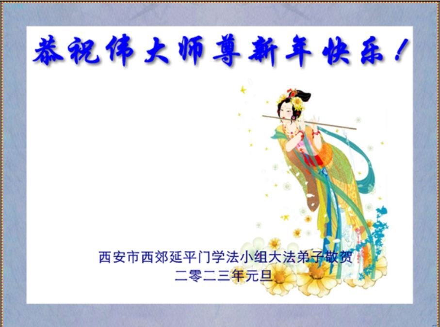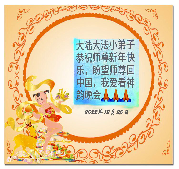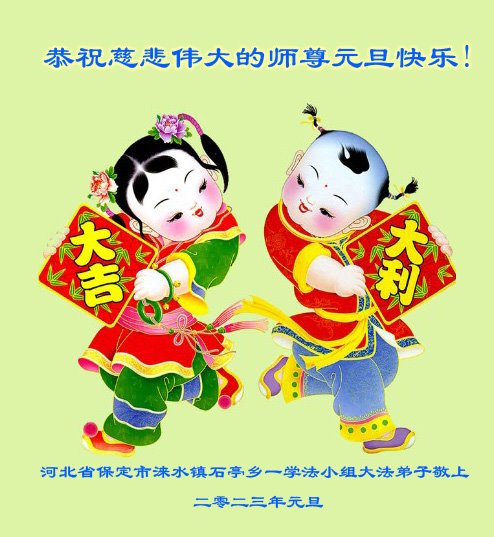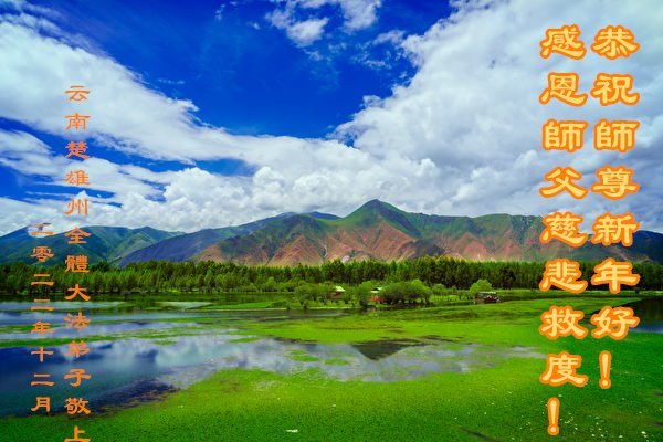 【明慧网二零二二年十二月三十一日】(明慧网通讯员综合报道)中国大陆的法轮功新学员感到万分幸运,在危机四伏的末劫之时得到法轮大法,感受到师尊无所不在的看护,体悟大法的洪恩浩荡。在2023年元旦来临之时,新学员们恭祝师父元旦快乐!