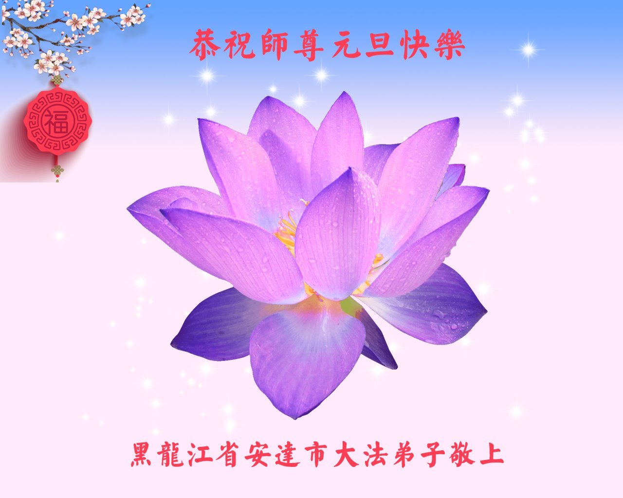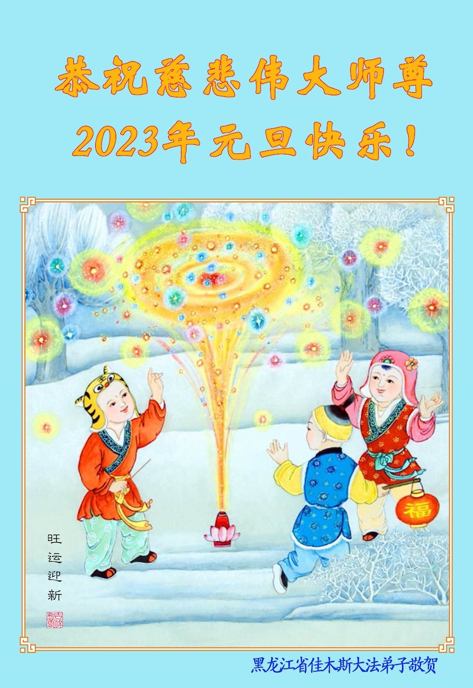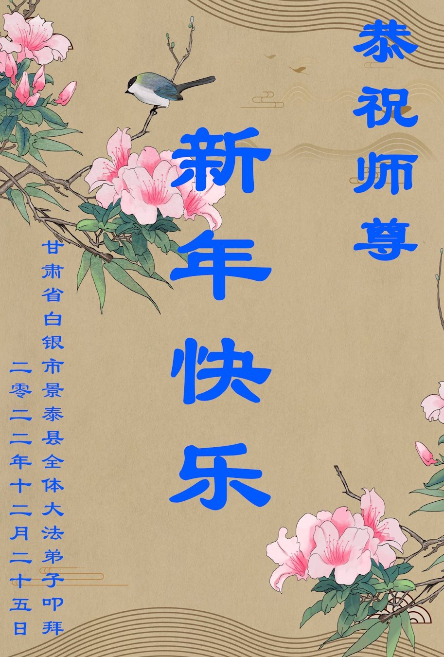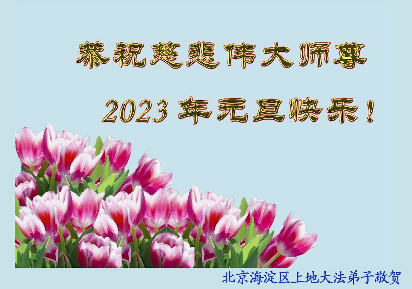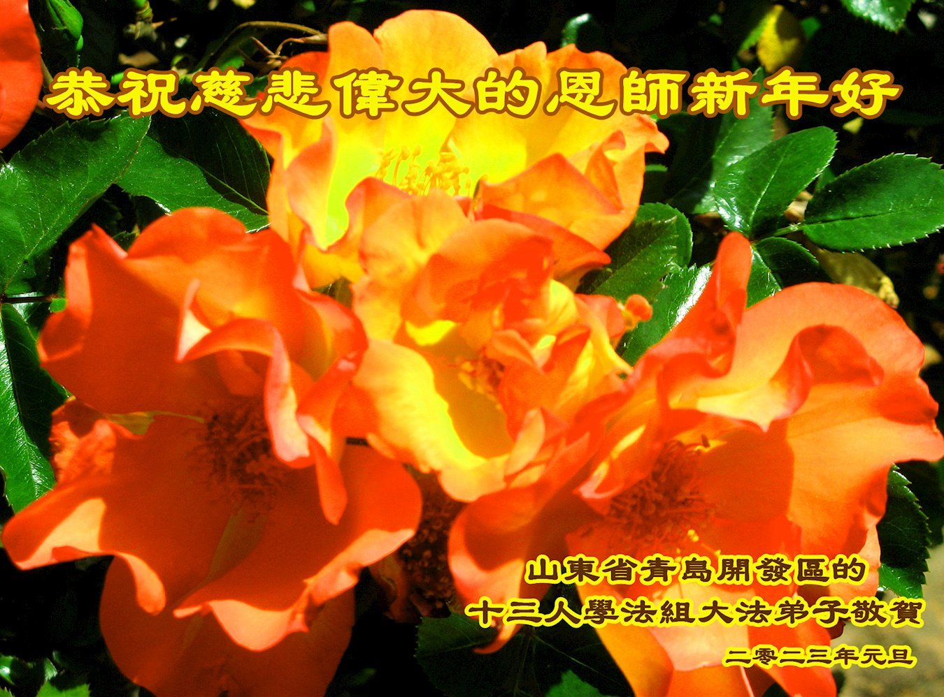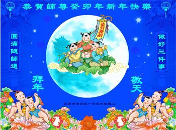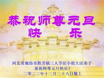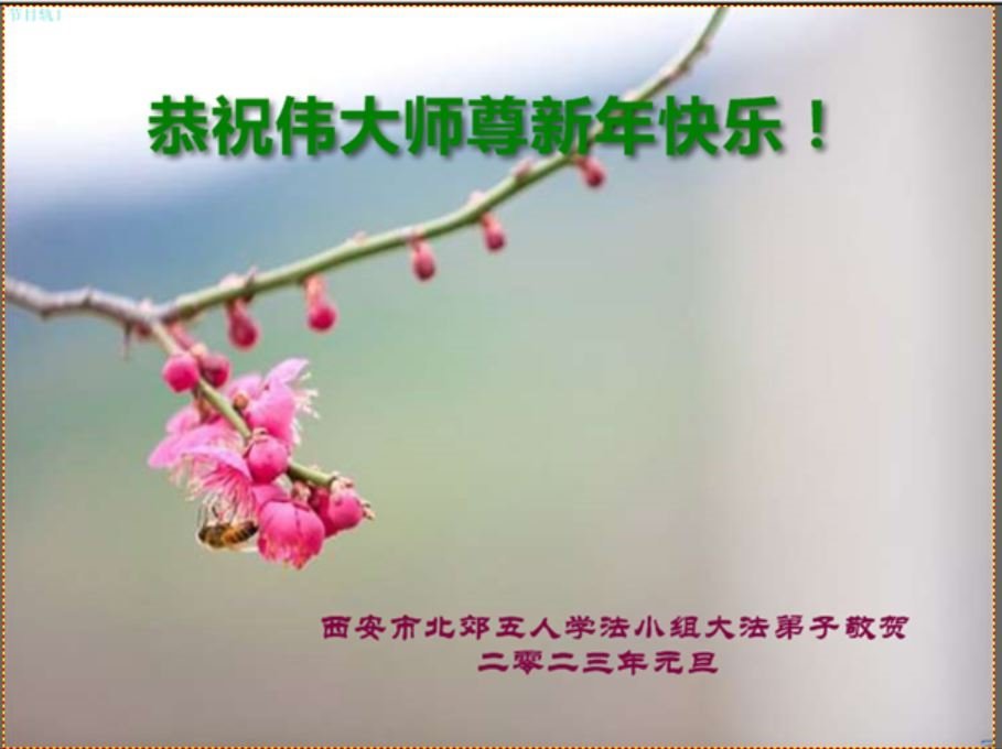 【明慧网二零二二年十二月三十一日】(明慧网通讯员综合报道)中国大陆的法轮功新学员感到万分幸运,在危机四伏的末劫之时得到法轮大法,感受到师尊无所不在的看护,体悟大法的洪恩浩荡。在2023年元旦来临之时,新学员们恭祝师父元旦快乐!